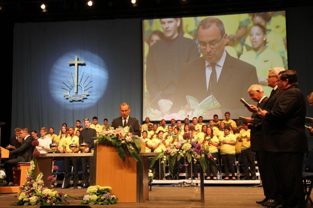 Bezirksapostel Wilfried Klingler (Mitteldeutschland) ist überglücklich, diese besonderen, beeindruckenden Tage in Erfurt miterlebt zu haben. Sie werden wohl unvergessen bleiben. Er ruft der Jugend zu, freudig, glaubensstark und erwählungsbewusst in die Zukunft zu gehen – im Lobpreis der Musik und im Gesang, im Wort, wenn man vom Herrn redet und das Evangelium verkündet, im Schweigen, wenn es angebracht ist, im Mittragen im Leid, im Hoffen auf die Zukunft und in der Erwartung des Herrn.