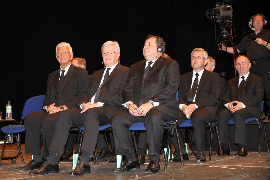 Fast 3.300 Gottesdienstbesucher versammeln sich am Sonntagmorgen in der Messehalle 1 zum Festgottesdienst mit dem Stammapostel. Als Bibelwort legt der Stammapostel Apostelgeschichte 22,14.15 zugrunde: