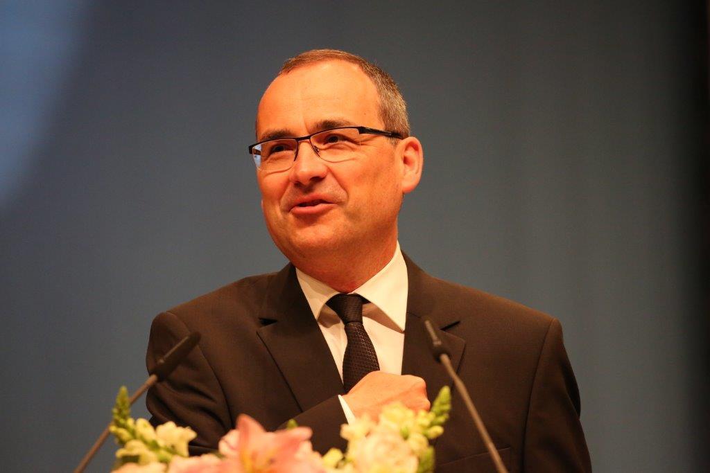 Nach dem Gottesdienst richtet Erfurts Oberbürgermeister, Andreas Bausewein, der auch am Gottesdienst teilnahm, herzliche Worte an die versammelte Gemeinde.