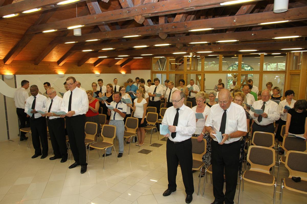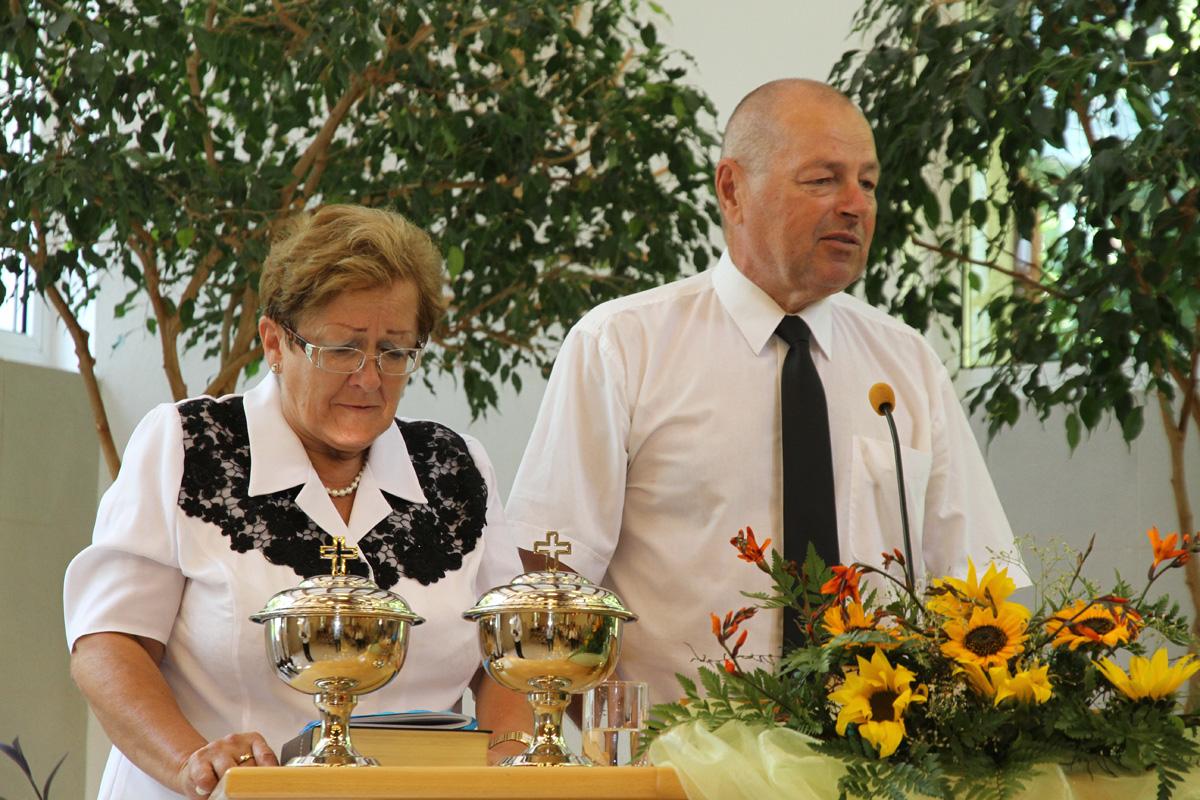 Zu diesem besonderen Gottesdienst waren alle slowakischen Glaubensgeschwister eingeladen. Wer kommen konnte und die erdrückende Hitze nicht scheute, war da. Auch Geschwister aus Wien waren mit angereist. Der Chor aus Sachsen, der über viele Jahre die musikalische Arbeit in Bratislava und Komarno vorbildlich unterstützt hat, gab dem Gottesdienst eine festliche Umrahmung. Bewegend war auch die Feier des Heiligen Abendmahls für die Entschlafenen.