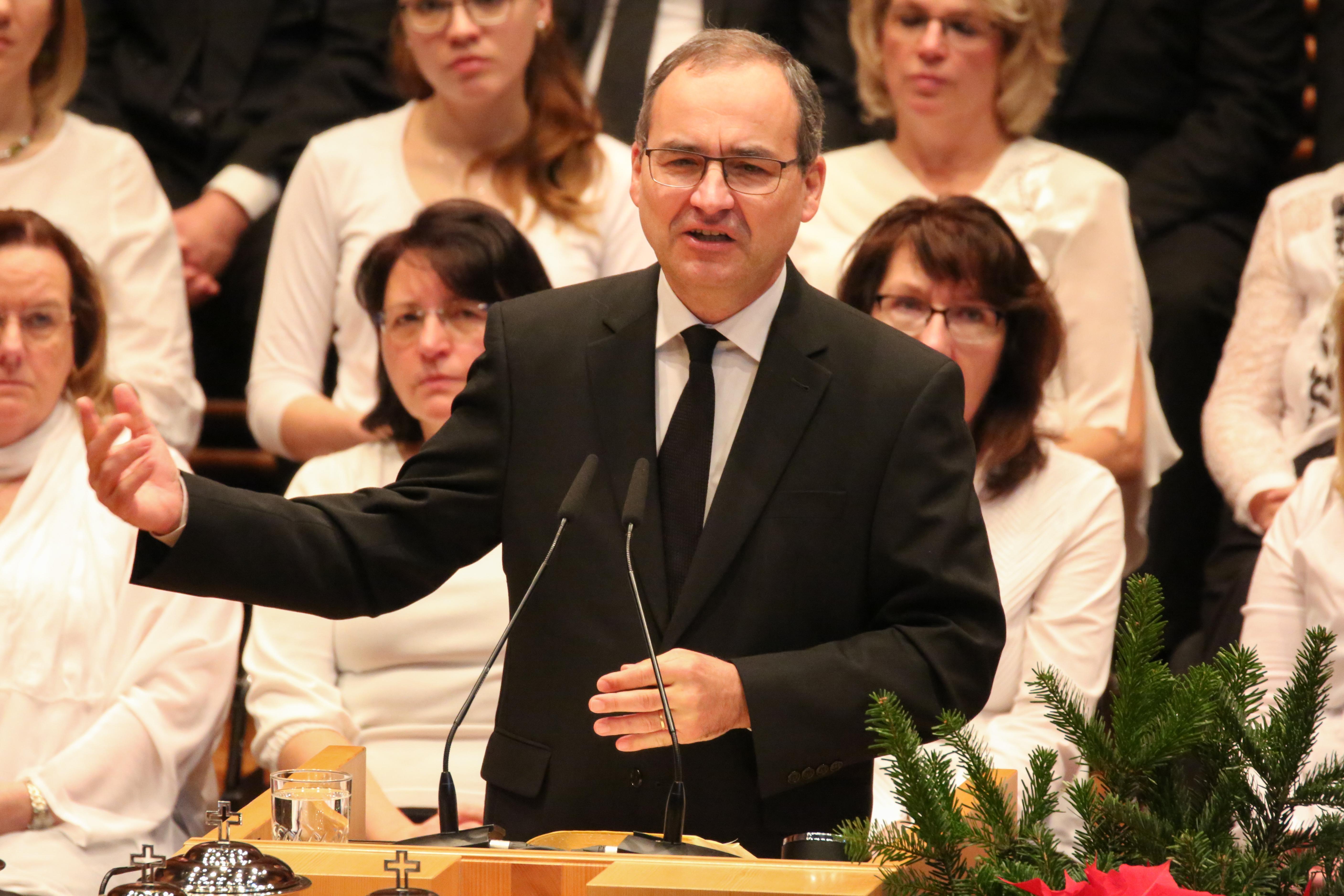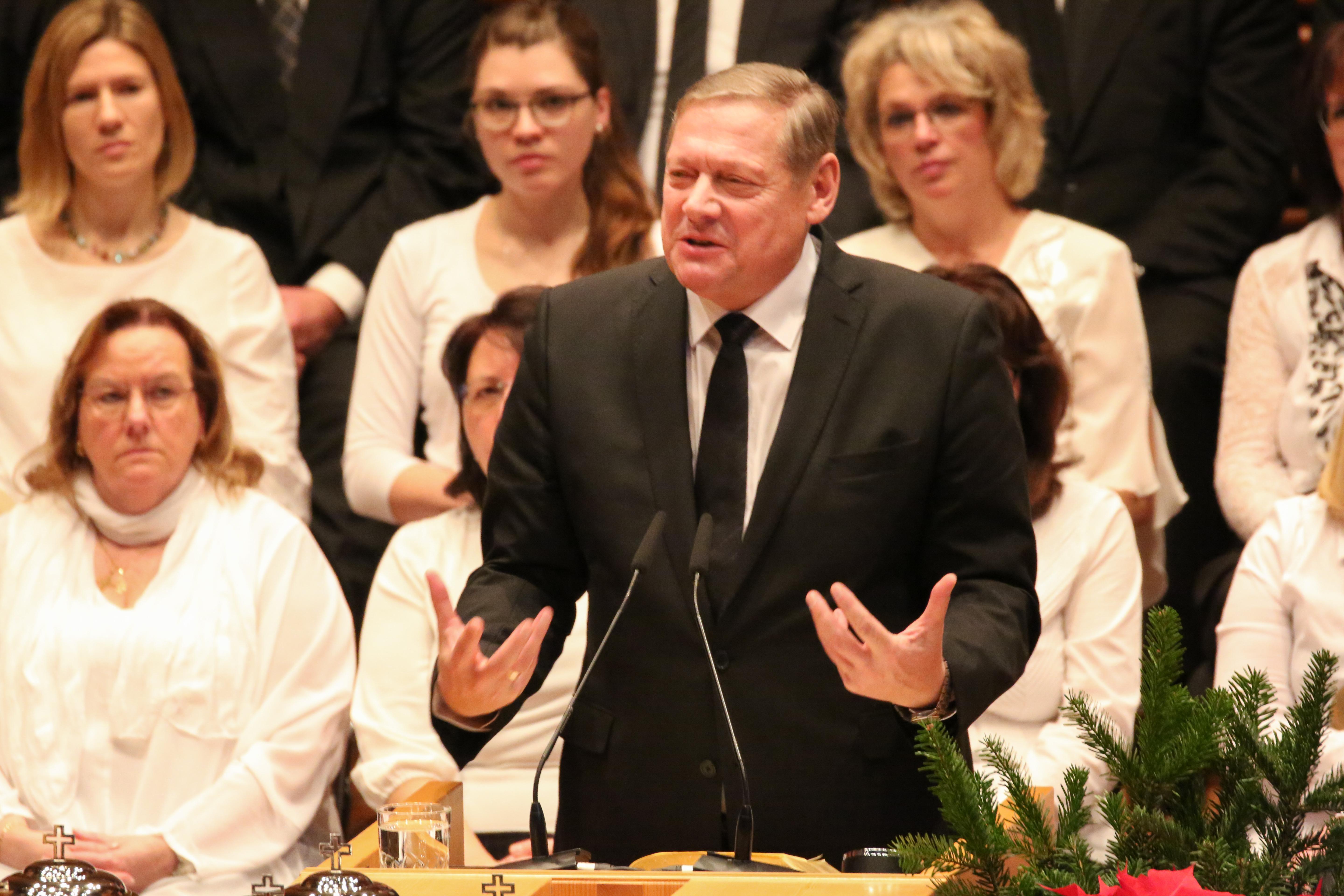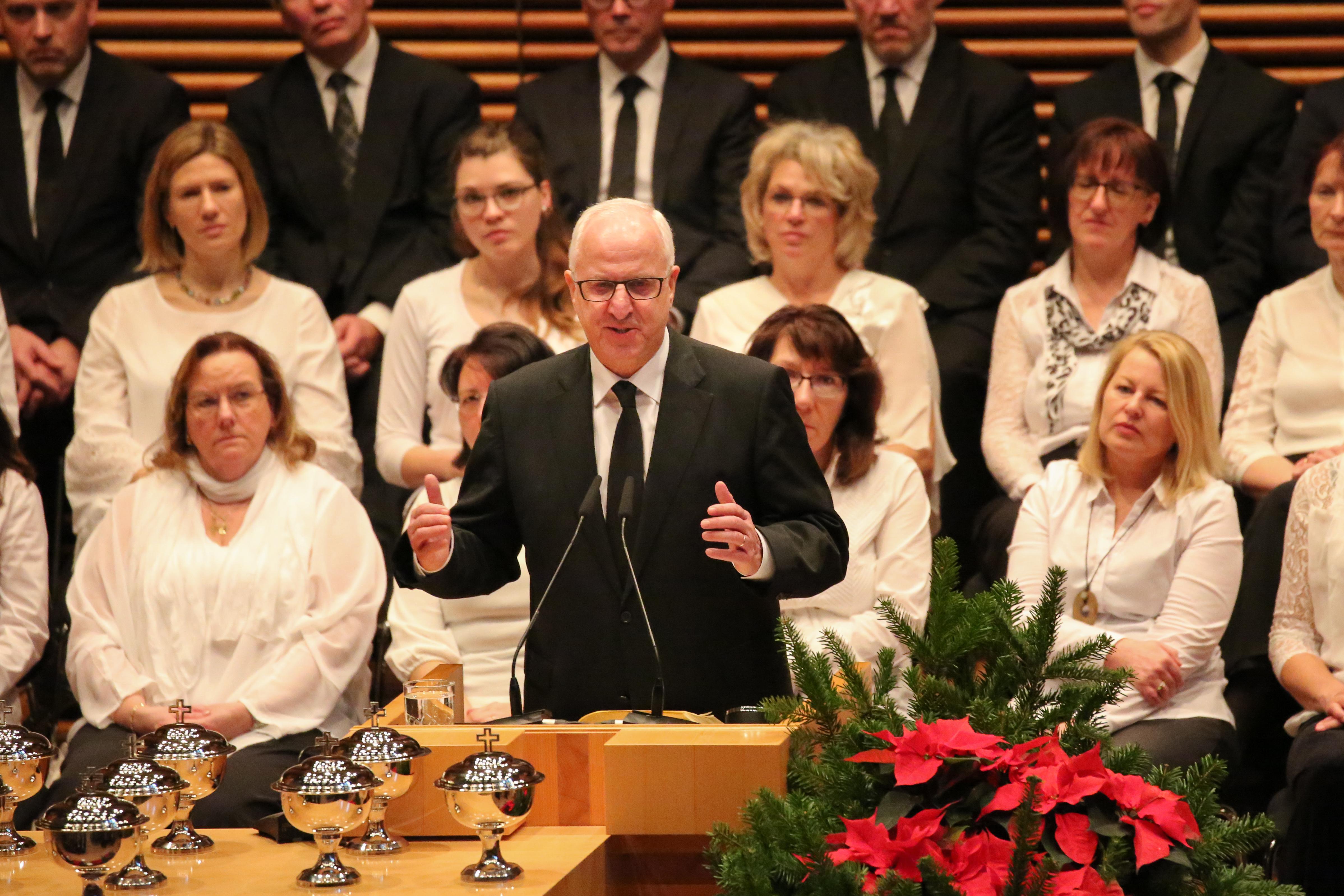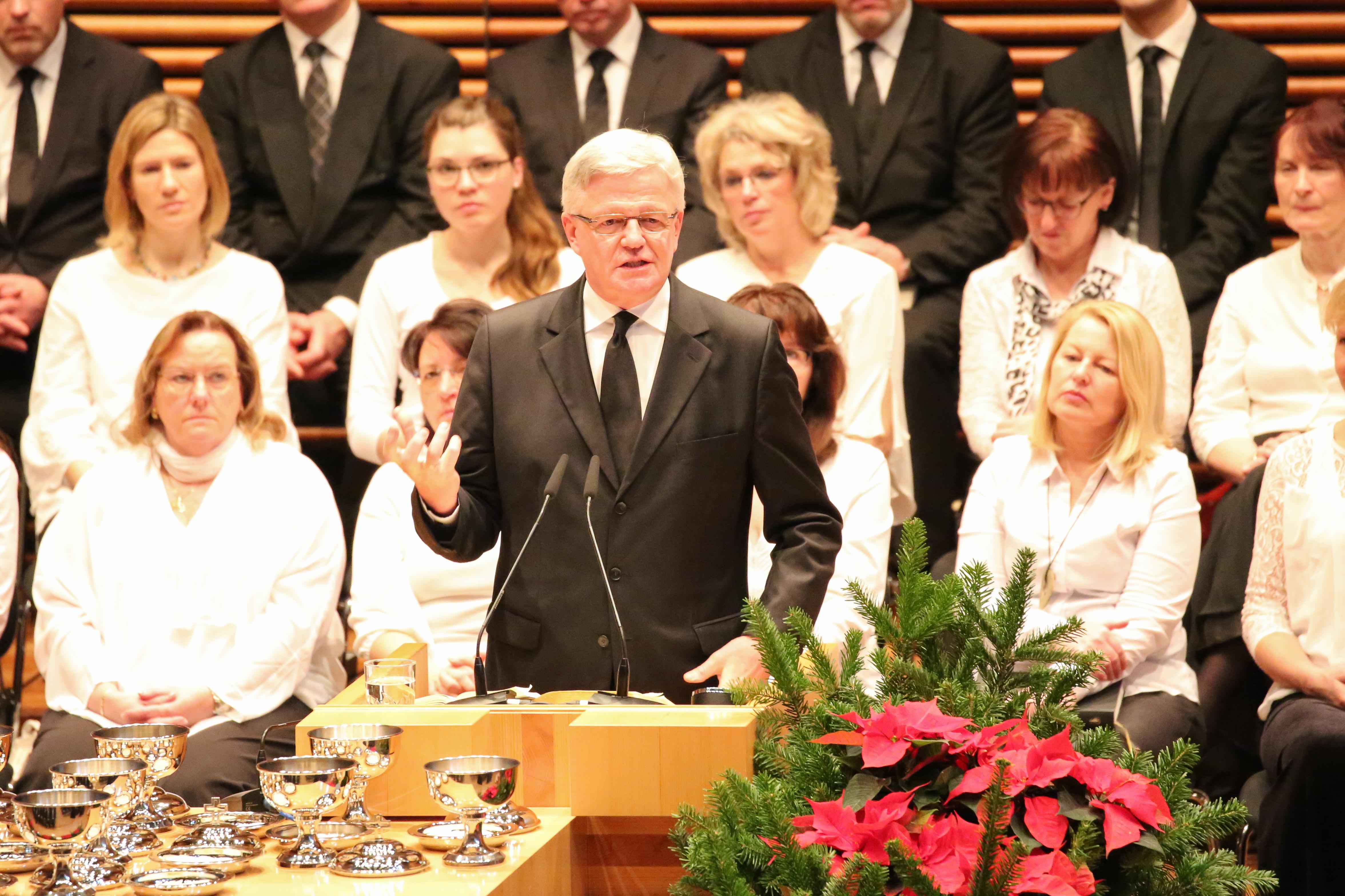 Stammapostel Schneider feierte am Sonntag, 23. Dezember 2018, den Gottesdienst zum 4. Advent in Weimar. In seiner Predigt ging es um den Auftrag der Christen, Gott für seine Erlösung zu loben und zu danken. Denn durch Jesu Opfer habe Gott den Menschen die Möglichkeit der ewigen Gemeinschaft mit ihm gegeben.