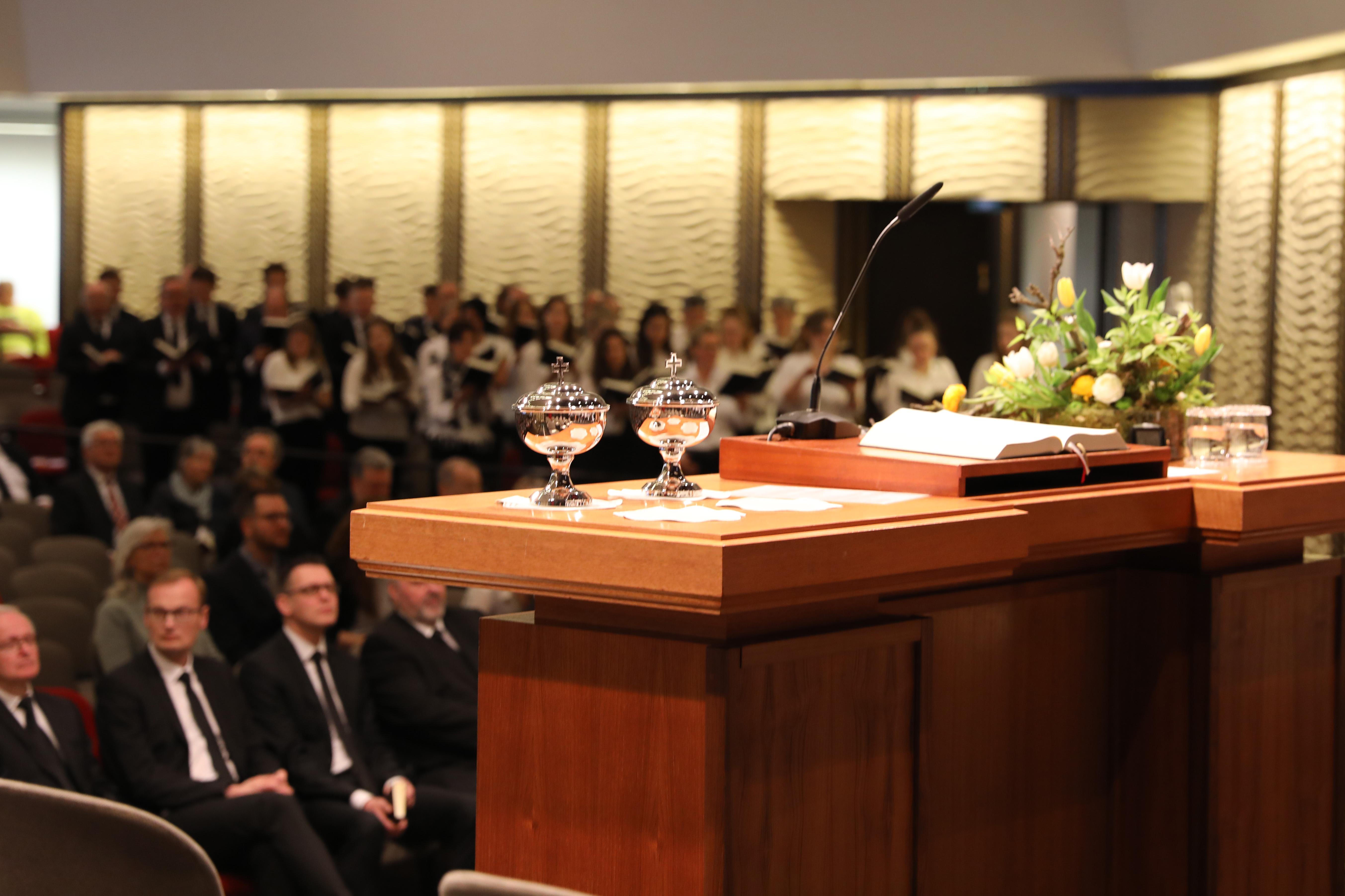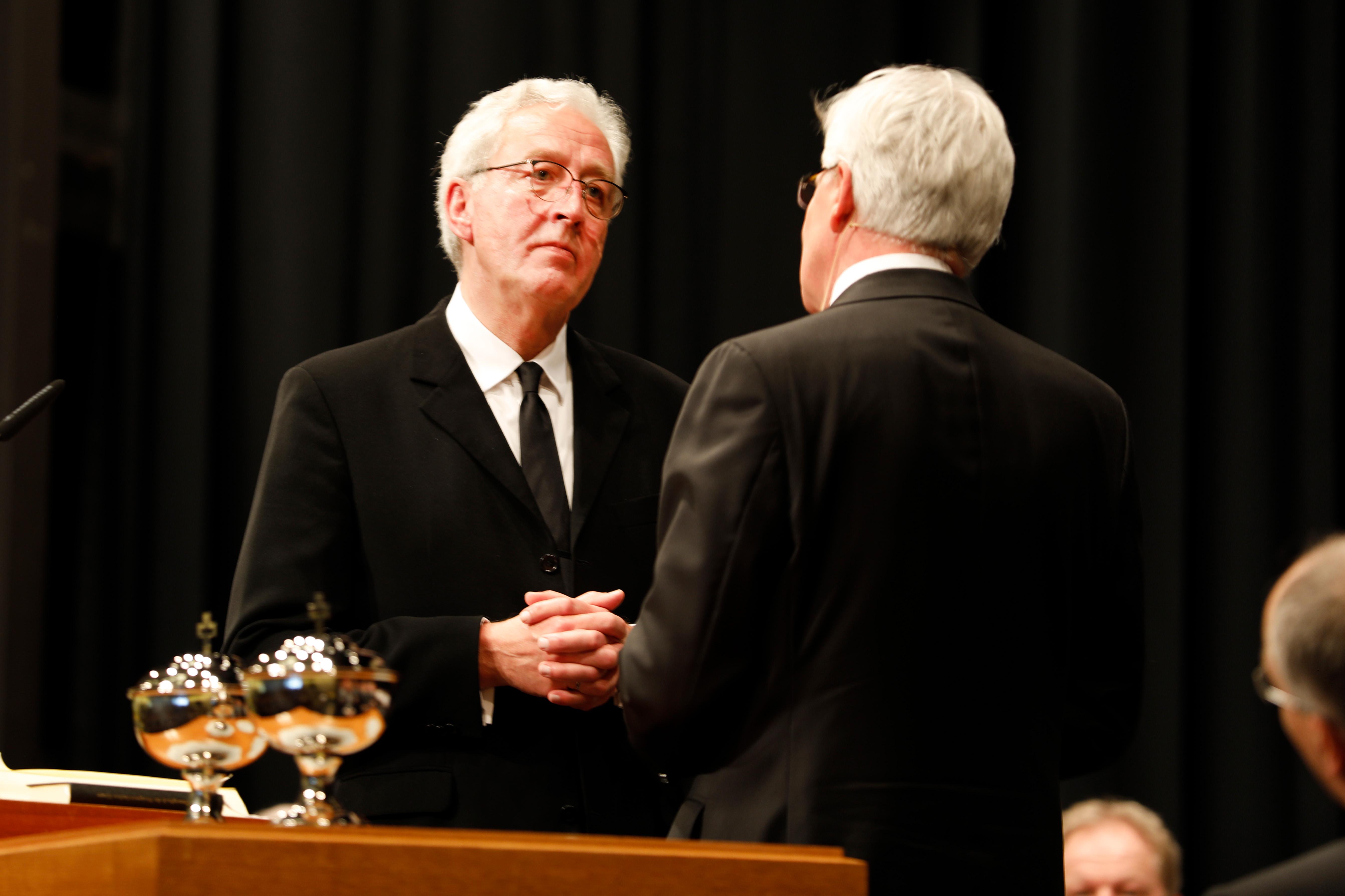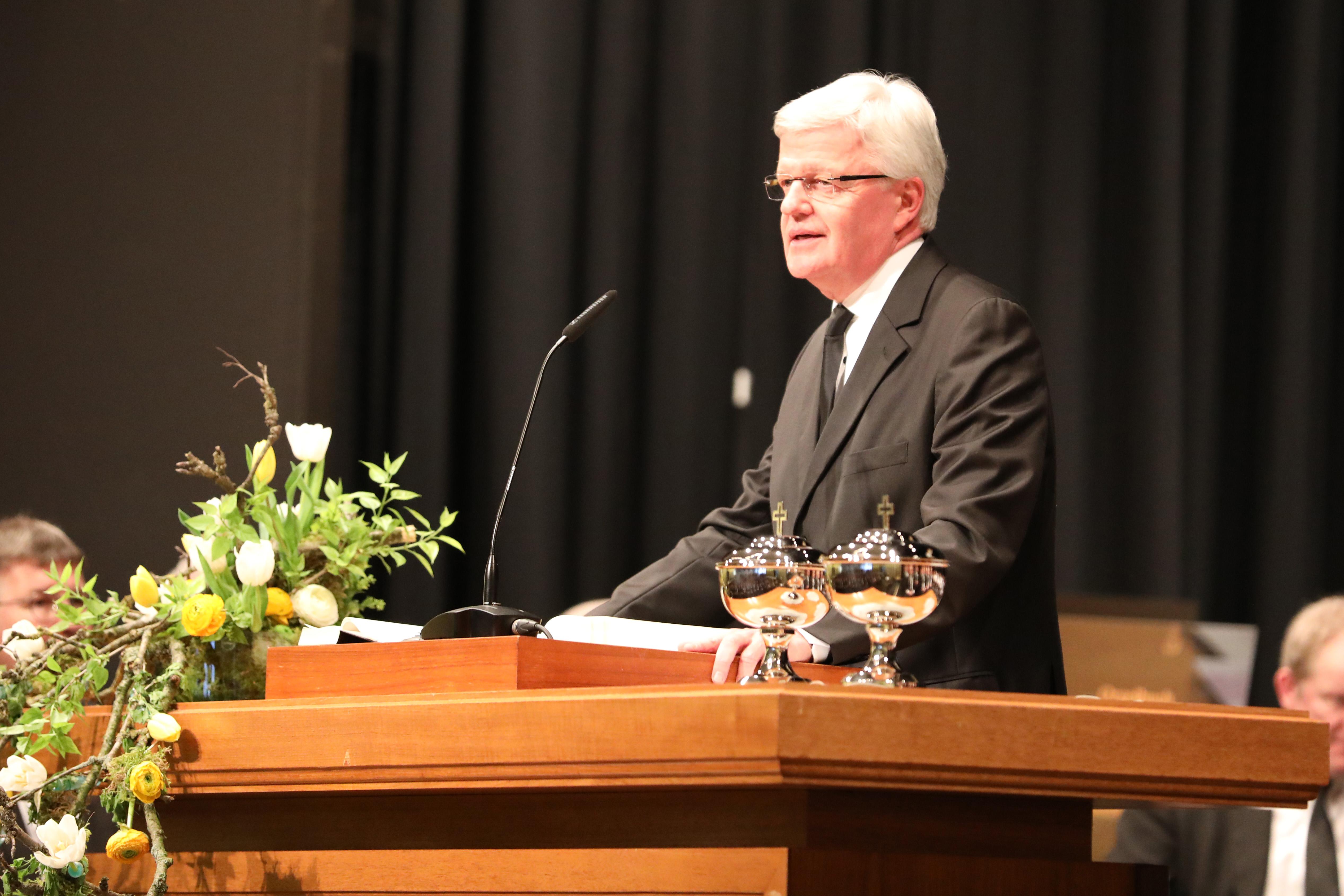 „Das ist nicht nur für dich, sondern für uns alle ein besonderer Augenblick“, leitete Bezirksapostel Krause die Ruhesetzung von Bischof Hartwig ein. „Wir danken dir, dass du dich mit deinen Gaben, mit deinen Kräften, mit deinem ganzen Herzen eingebracht hast und für uns alle gearbeitet hast“, würdigte Bezirksapostel Krause die Mitarbeit des Bischofs: „Du warst uns ein großartiger Begleiter.“ Besonders wertschätzend hob er dabei seine klare Ausrichtung zur Lehre und sein Gottvertrauen hervor. Seinen Dank richtete er auch an die Familie von Bischof Hartwig, die ihn bei jeder Entscheidung unterstütze.