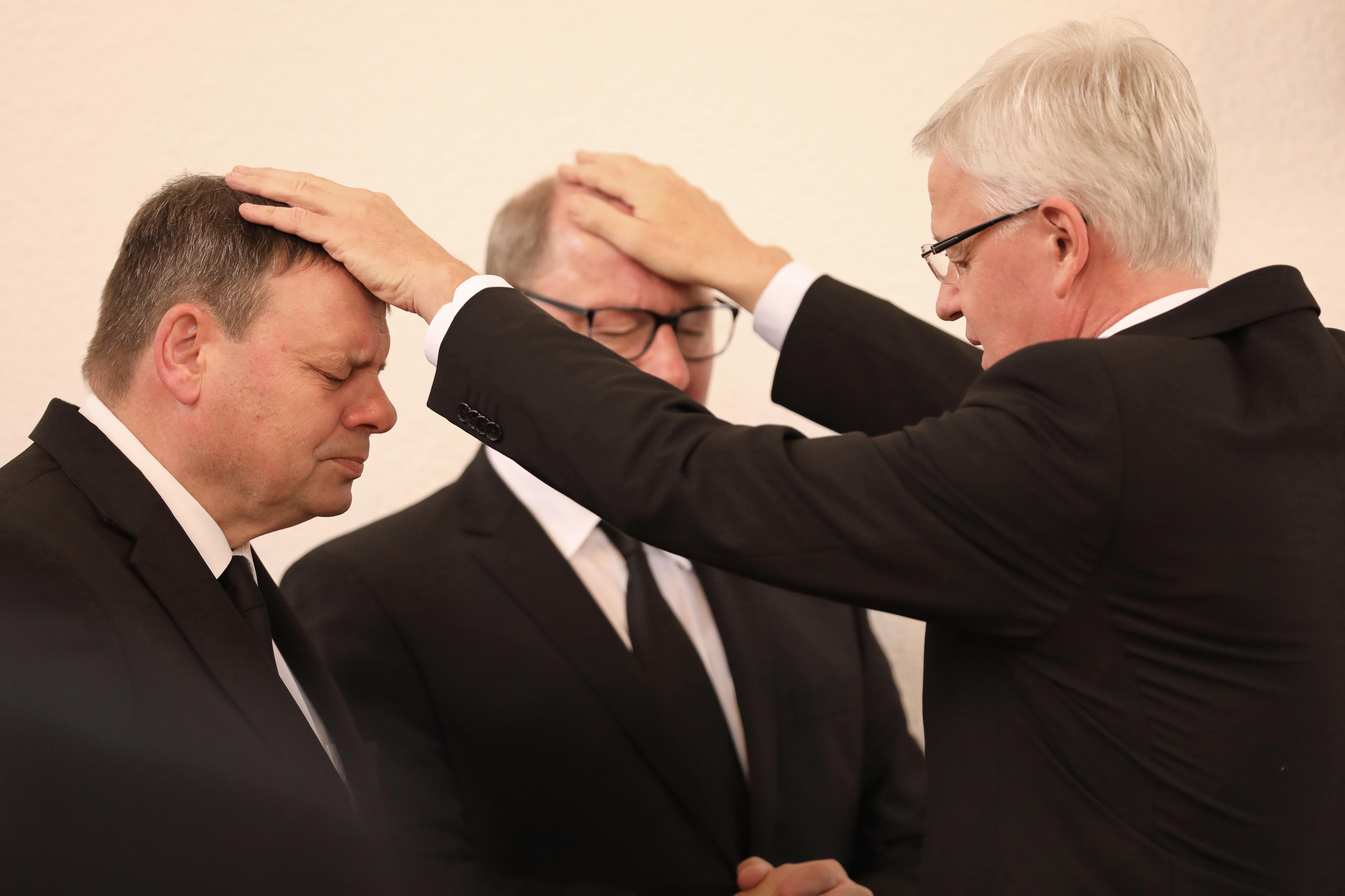 Verstorbene, die durch die beiden Sakramente die Wiedergeburt aus Wasser und Geist erfahren haben, sind – so der neuapostolische Glaube – den in Christus Gestorbenen gleichgestellt. In Kaltenkirchen vollzog sich der sichtbare Akt der Spendung der Heiligen Sakramente an Bezirksältesten Holger Grasshoff und Gemeindevorsteher Lambert Adams.