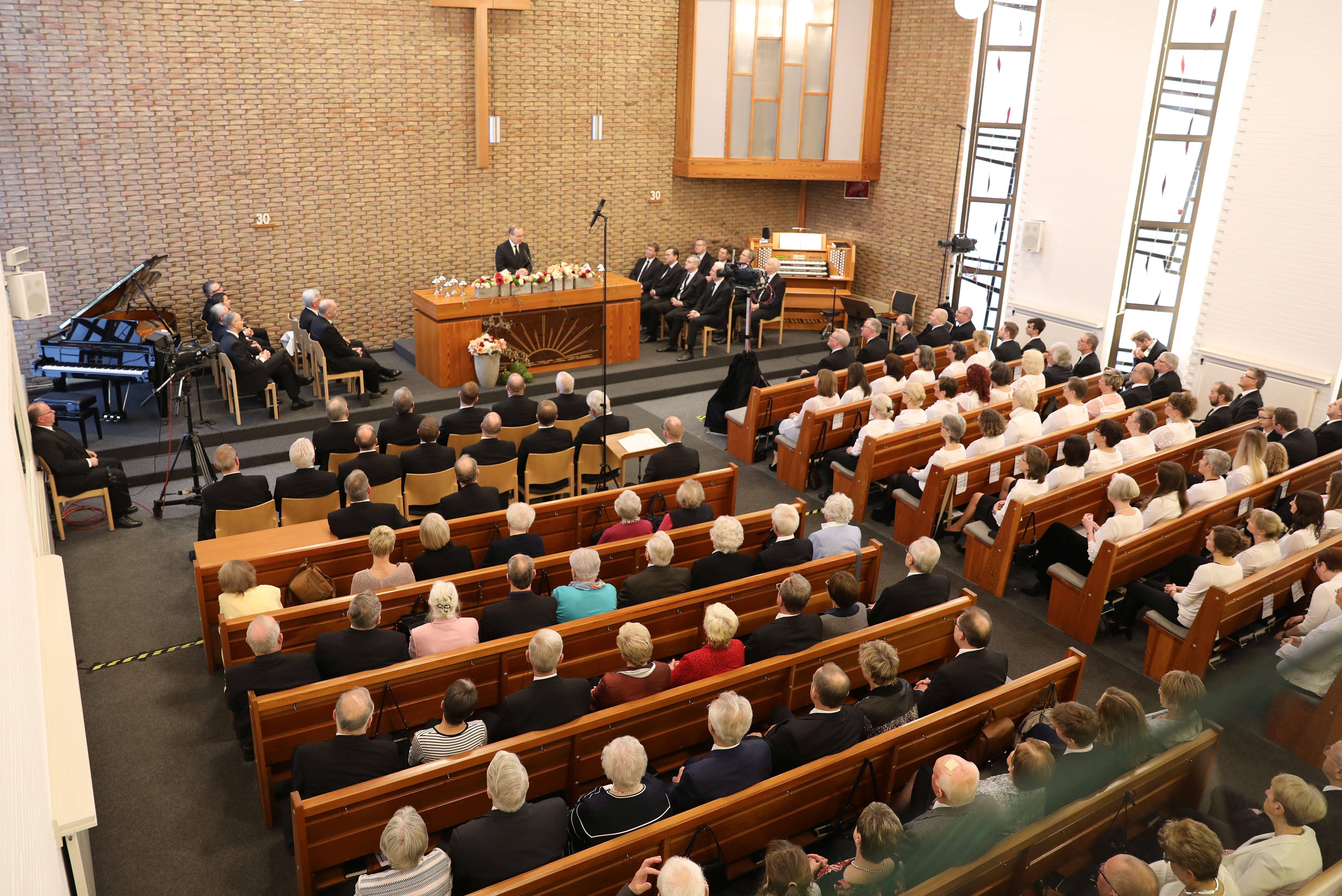 Bezirksapostel Rüdiger Krause hatte zu diesem besonderen Anlass alle Apostel und Bischöfe seines Arbeitsbereiches eingeladen und mit persönlichen Zeilen zu Psalm 106,1 begrüßt: „Halleluja! Danket dem Herrn; denn er ist freundlich, und seine Güte währet ewiglich.“ Die Apostel und Bischöfe, die bereits am Samstag angereist waren, nutzten die Zeit, um das Jahr 2019 Revue passieren zu lassen, gemeinsam zu beten und sich über anstehende Themen und Termine 2020 auszutauschen.
