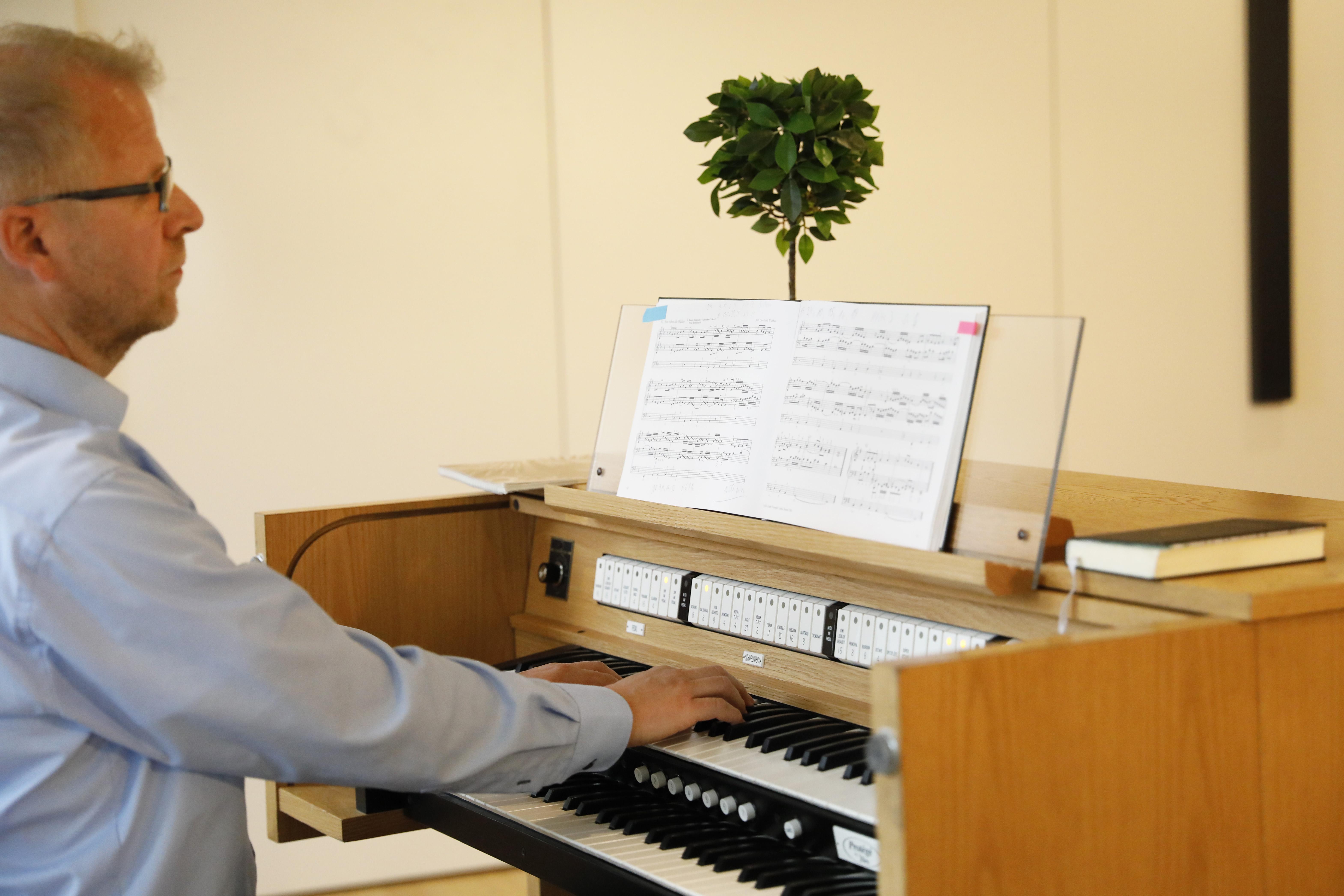 Organist Uwe Kudlick übernahm wie bereits am vergangenen Sonntag die live-Begleitung des virtuellen Gemeindegesangs zum Eingangslied „Einst herrlich dort zu werden“ (Gesangbuch Nr. 399) und zum Bußlied „Betgemeinde heil’ge dich“ (Gesangbuch Nr. 106).