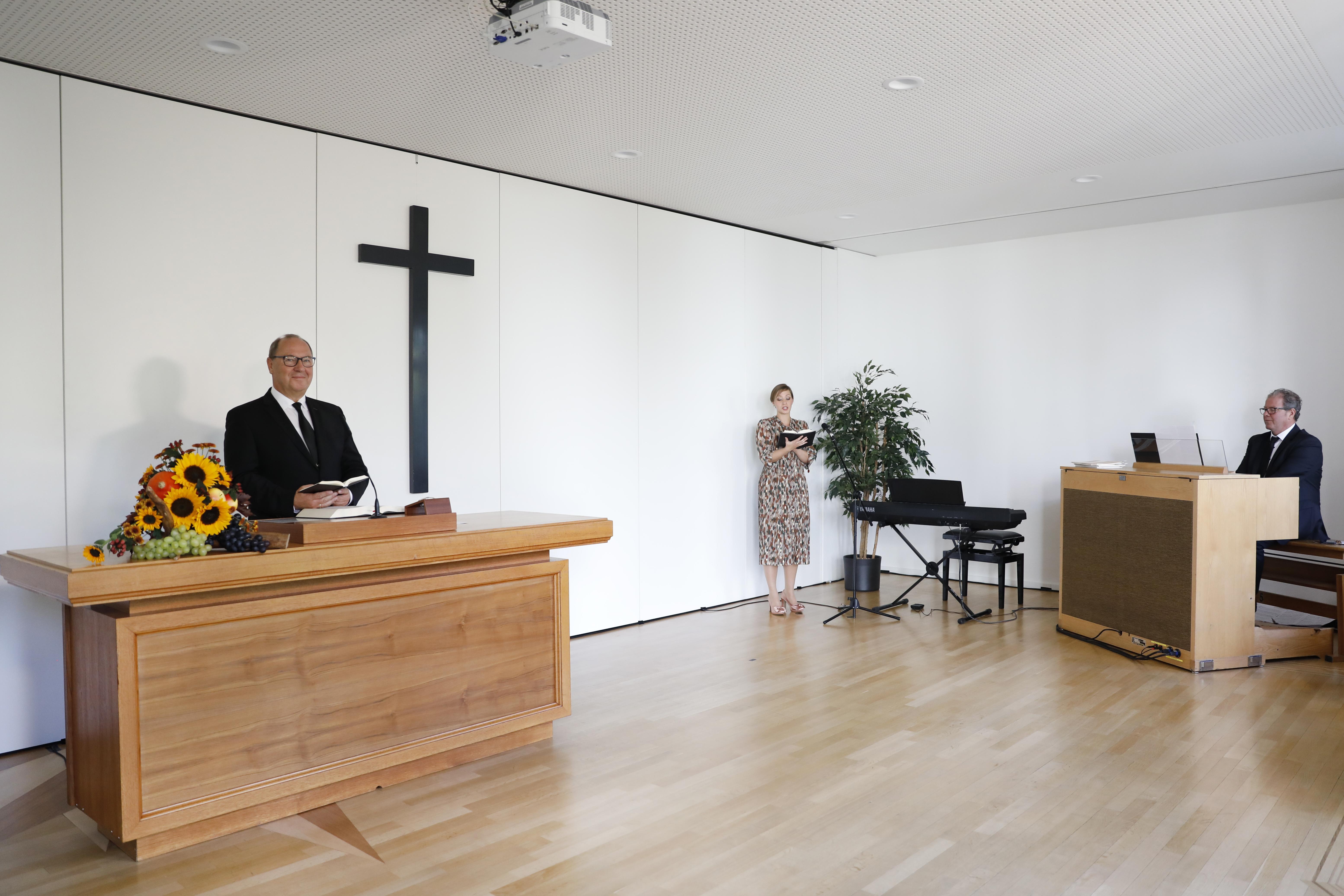 Mit seinen einleitenden Worten nahm der Bezirksälteste Bezug zum Bibelwort aus Psalm 104,2, welches die Grundlage für den Gottesdienst bildete: „Herr, wie sind deine Werke so groß und viel! Du hast sie alle weise geordnet, und die Erde ist voll deiner Güter.“