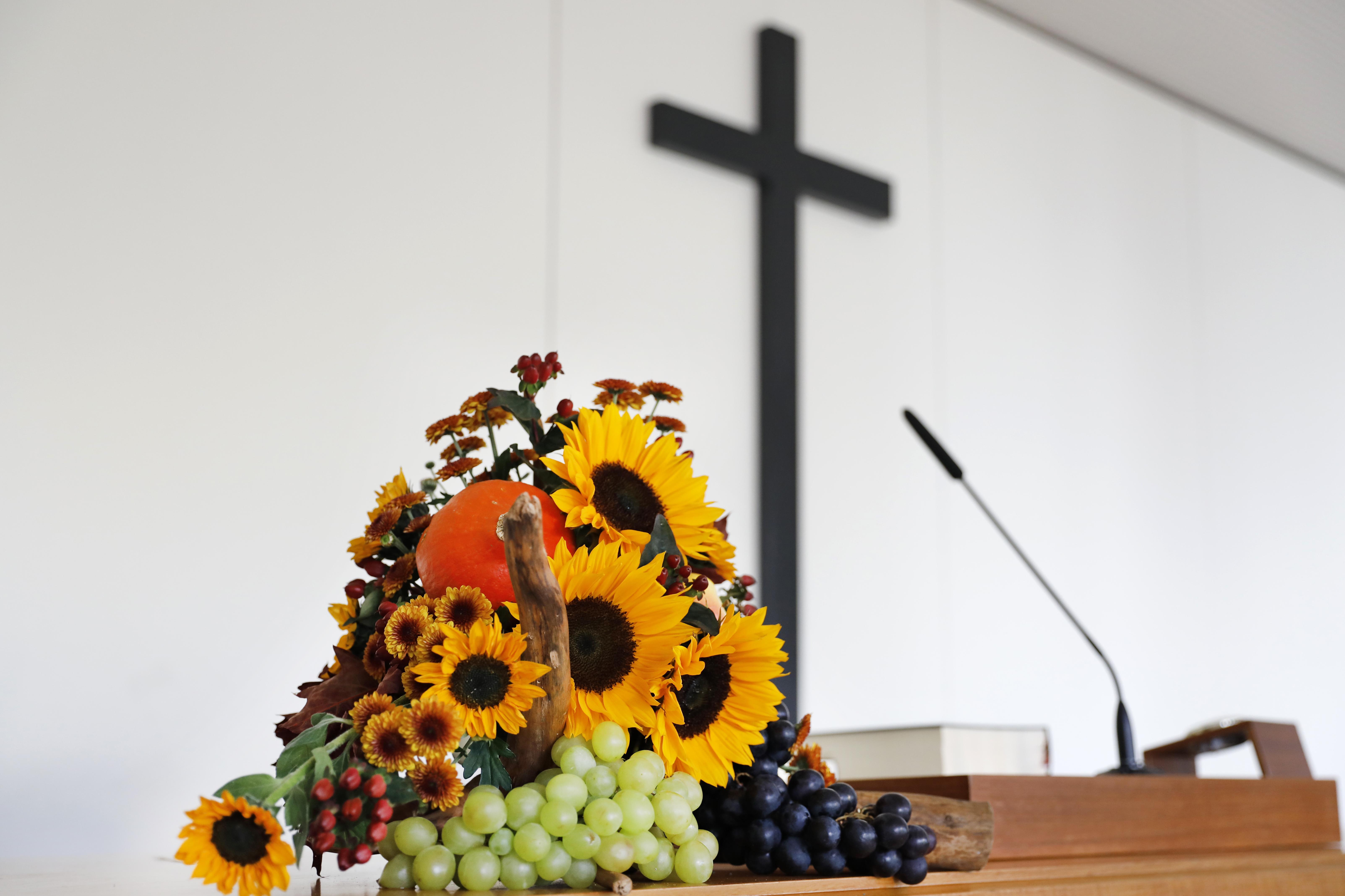 Der Erntedanktag sei ein Augenblick zum Innehalten und Besinnen, was Gott für Wunder geschaffen habe, die dem Menschen viel zu oft als selbstverständlich erschienen, erklärte Bezirksältester Grasshoff. Beispielhaft nannte er das Zusammenspiel in der Pflanzen- und Tierwelt. „Das ist Gottes Werk, nicht unser Werk“, betonte er.