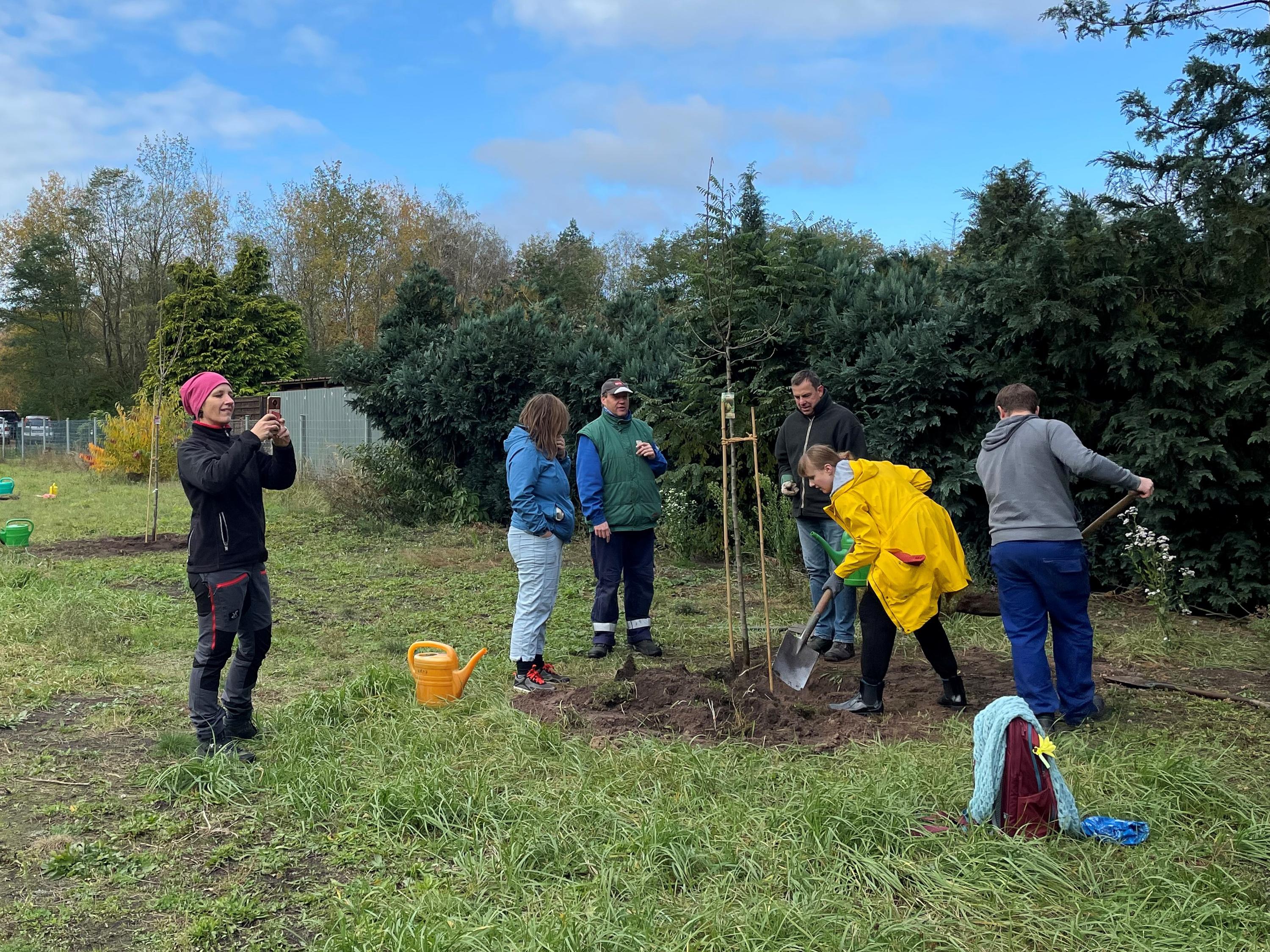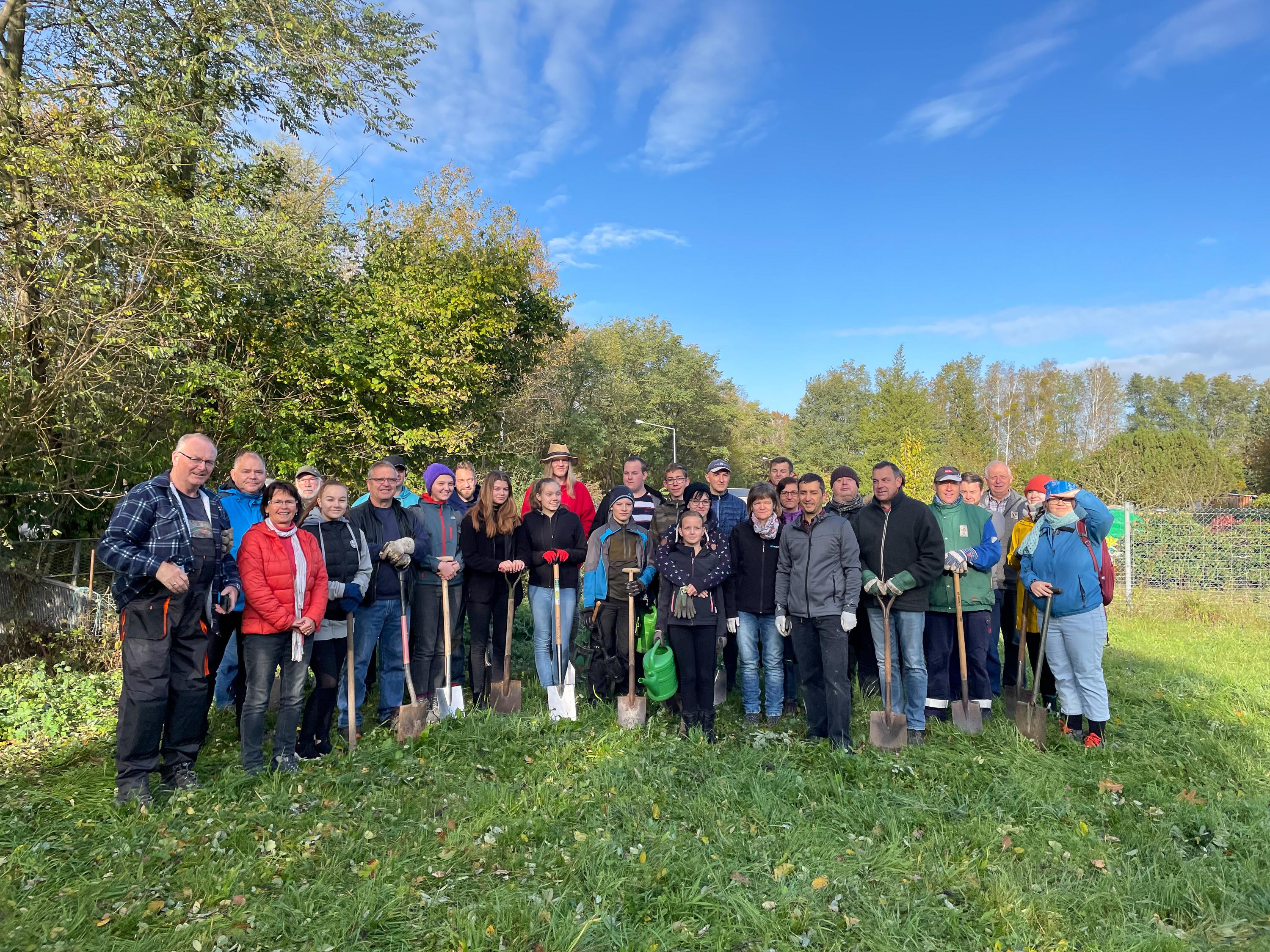 Am 23. Oktober 2021 sticht der erste Spaten in die Brandenburger Erde. In Zusammenarbeit mit dem Naturschutzbund Senftenberg werden die ersten 26 Pflanzen eingesetzt. Es sind elf Obstbäume und 13 Obststräucher, die bei kühlem aber sonnigem Wetter gemeinsam von Nabu-Mitgliedern und Mitgliedern der Gemeinden Spreewald, Lauta, Hoyerswerda und Cottbus gepflanzt werden. Der Anfang ist gemacht. Im Nachgang wird noch ein gemeinsames Schild an die Streuobstwiese gestellt.