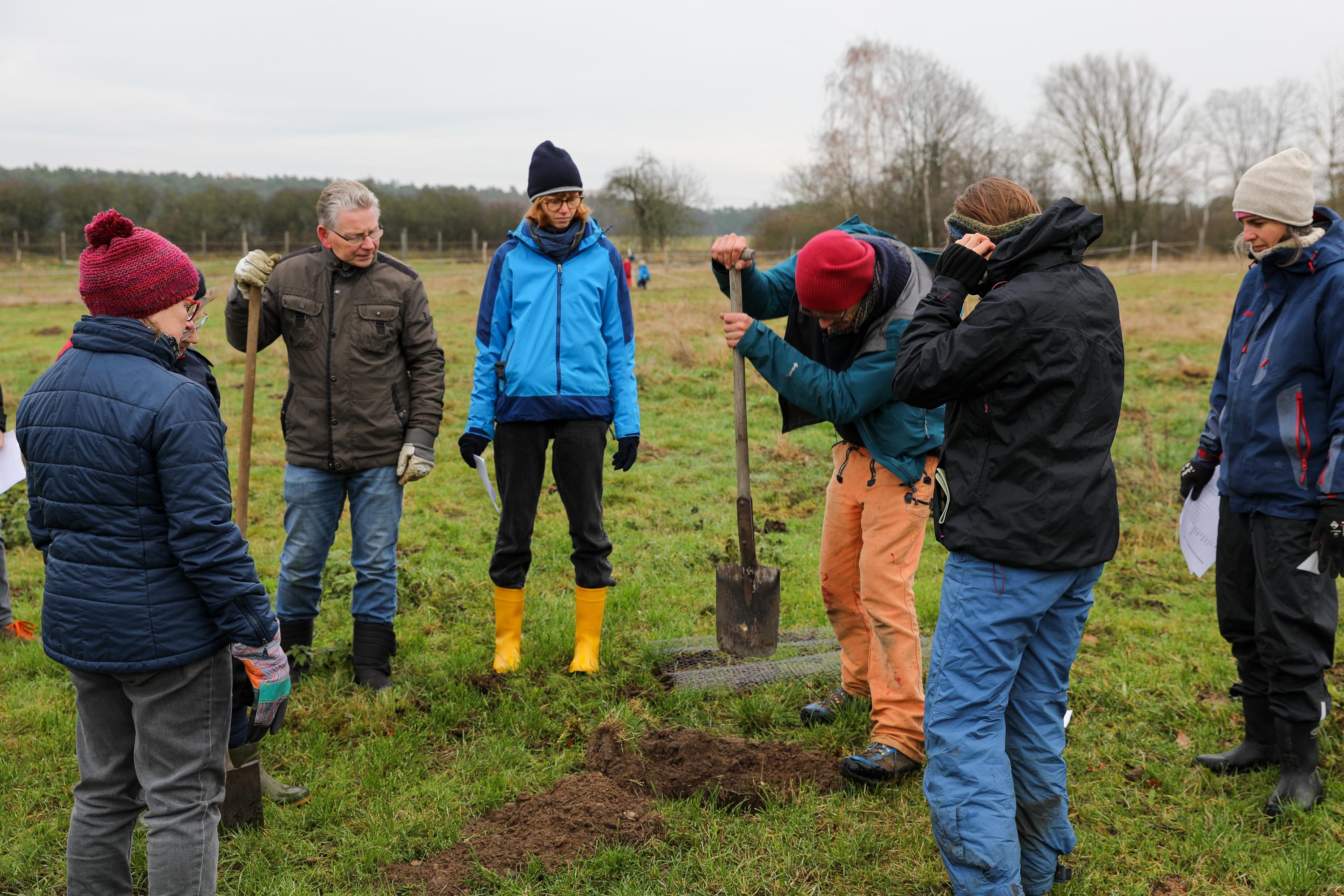 Die Aktion zieht sich bis zum 27. November des Jahres auf einer Weide bei Wiesenburg. In Arensnest wird die Wiese durch die eingesetzten Bäume unterteilt. Seit 600 Jahren grasen Schafe in der alten Schäferei. Die Tradition will der Schäfer weiterführen und dabei mit einem zukunftsfähigen Nutzungskonzept im Einklang mit der Natur handeln. Deshalb ist vor der Pflanzung auch ein ornithologisches Gutachten notwendig, die Weide liegt im Vogelschutzgebiet. Am Ende des kalten, aber trockenen Tages sind 268 Bäume und Sträucher in der Erde. Sie werden die Weide durch ihren Schatten vor dem Austrocknen bewahren.
