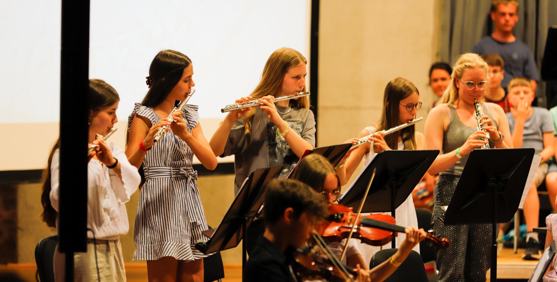 "Alles hat so seine Zeit, ohn' Ende ist die Ewigkeit", lautete das Motto des Kinderorchester- und Kinderchorwochenendes im Juni 2023. Zur Teilnahme waren alle Kinder von 8 bis 15 Jahren eingeladen, die Instrumente spielen oder gerne singen. Im kindgerechten Gottesdienst wurde den Kindern die Bedeutung durch eine Lesung "Alles hat so seine Zeit" und Interaktionen nahegebracht.