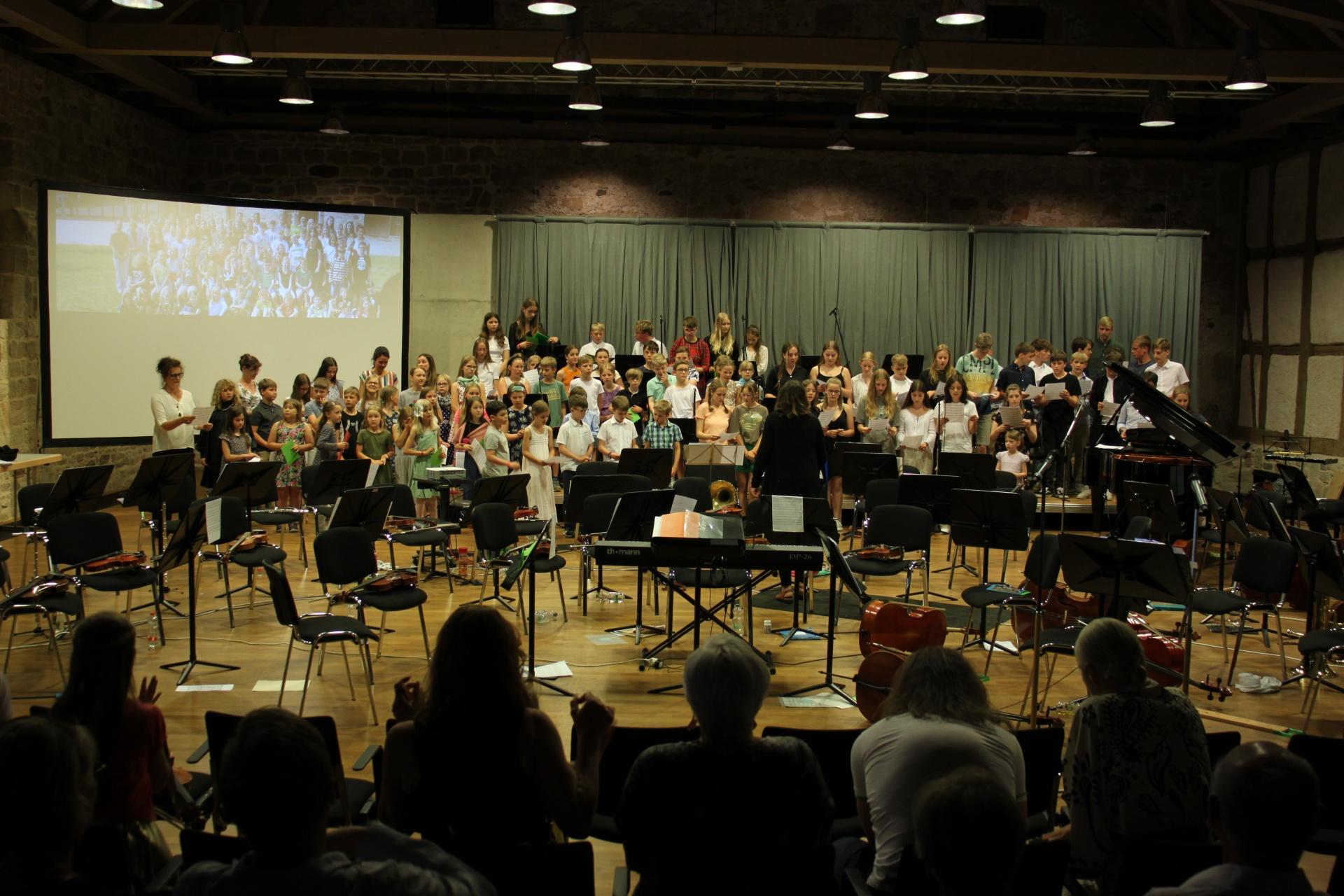 Das Wochenende endete mit einem Werkstattkonzert am Sonntagnachmittag. Es lebte von einem bunten Programm aus Orchesterwerken und Chorstücken von für Kinderensembles bearbeiteten Werken klassischer Literatur, Filmmusik und Popmusik. Die Präsentation von Bildern und Texten des Buches "Alle Farben des Lebens" (von Lisa Aisato) gestalteten den Rahmen.