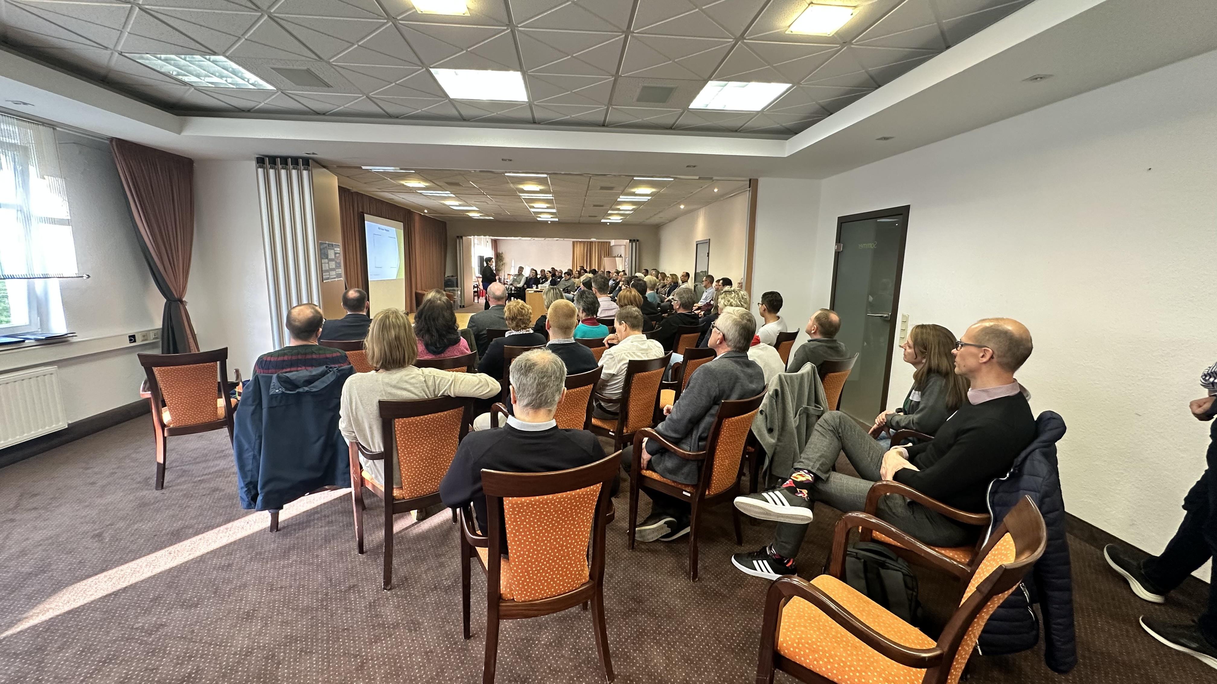 Nach der Begrüßung stimmte ein geistlicher Impuls inhaltlich auf das Wochenende ein. Mehr als 80 Teilnehmenden aus ganz Nord- und Ostdeutschland trafen zum ersten Mal in dieser Runde zusammen. Dafür hatte die AG „Kinder und Unterrichte“ ein geographisches Kennlernspiel vorbereitet. Requisiten wie eine Mönchskutte, der Schriftzug Moin oder ein Fotoband über Dresden boten Gelegenheit zu einem Gesprächseinstieg.