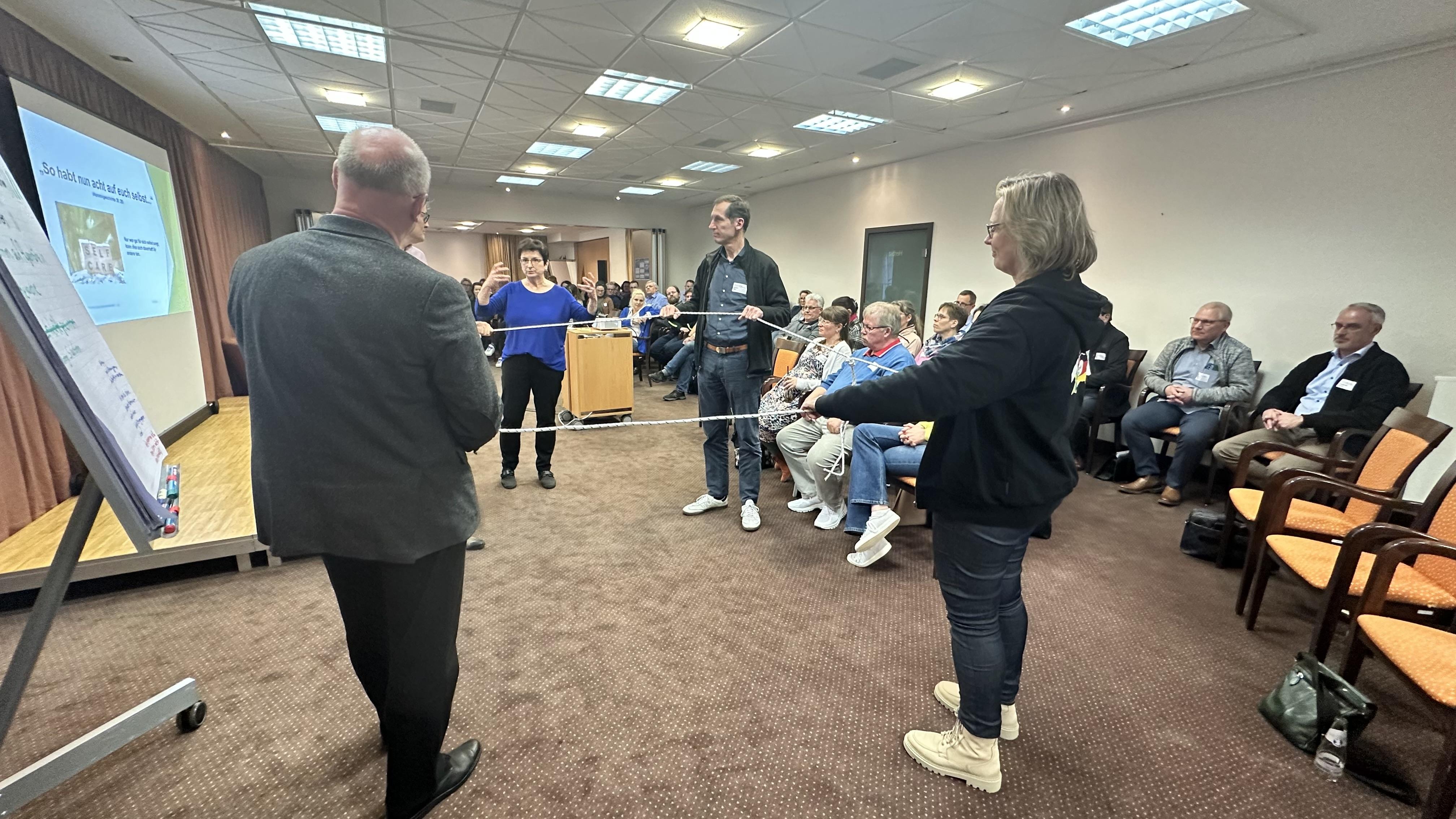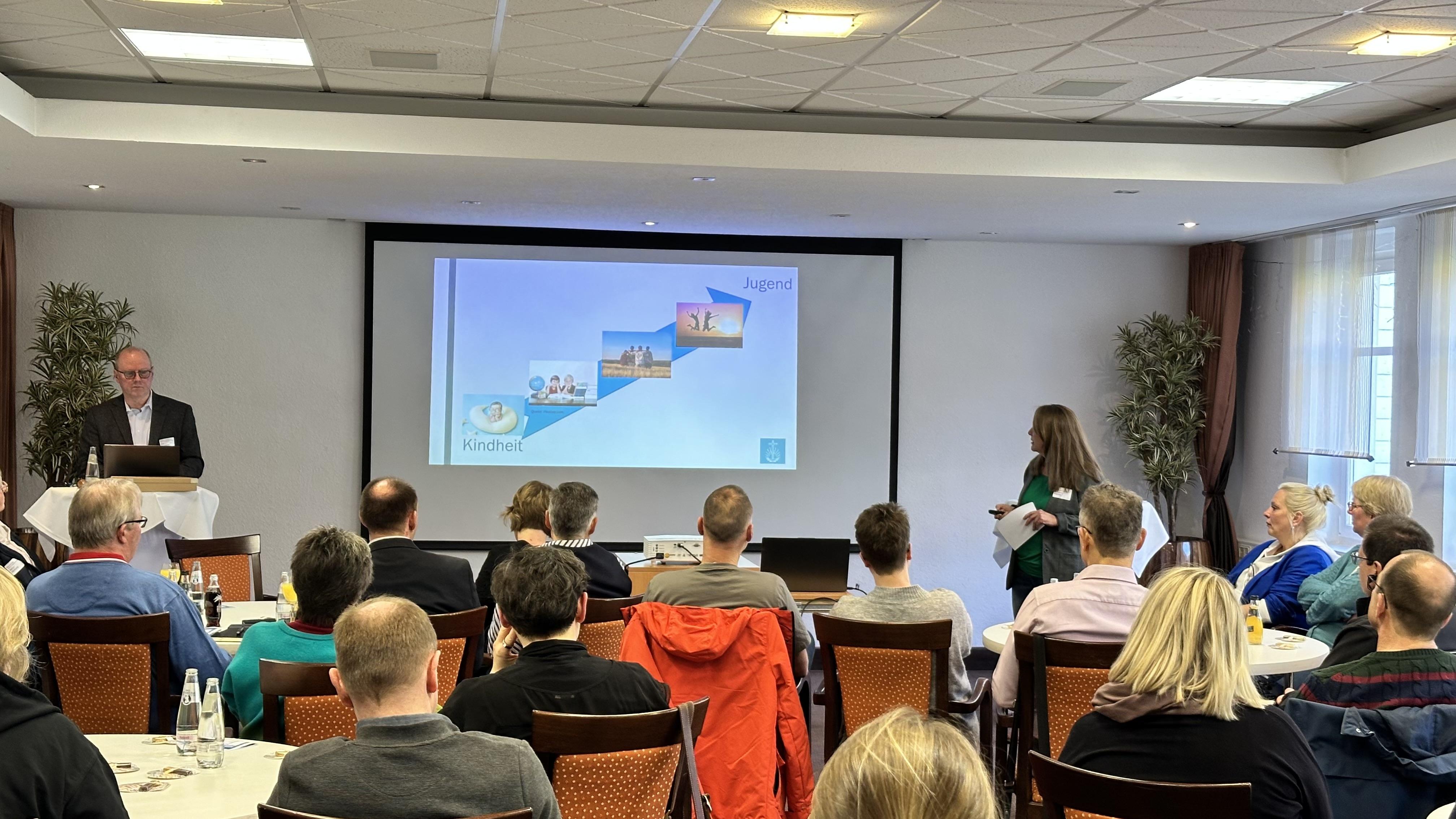 Im letzten Modul des Tages gab Kommunikationstrainerin Bärbel Irtmann den Lehrkräften rhetorische und systemische Hilfe an die Hand und stellte einen „Erste-Hilfe-Koffer“ für Ehrenamtliche vor. Sie lud ein, zu reflektieren „Wie weit geht meine Verantwortung im Ehrenamt?“ und gab Hinweise zu Stolpersteinen in der Kommunikation sowie dem Einsatz von Körpersprache und Mimik. Den Abschluss bildete ein Podiumsgespräch mit Bezirksapostelhelfer Helge Mutschler.