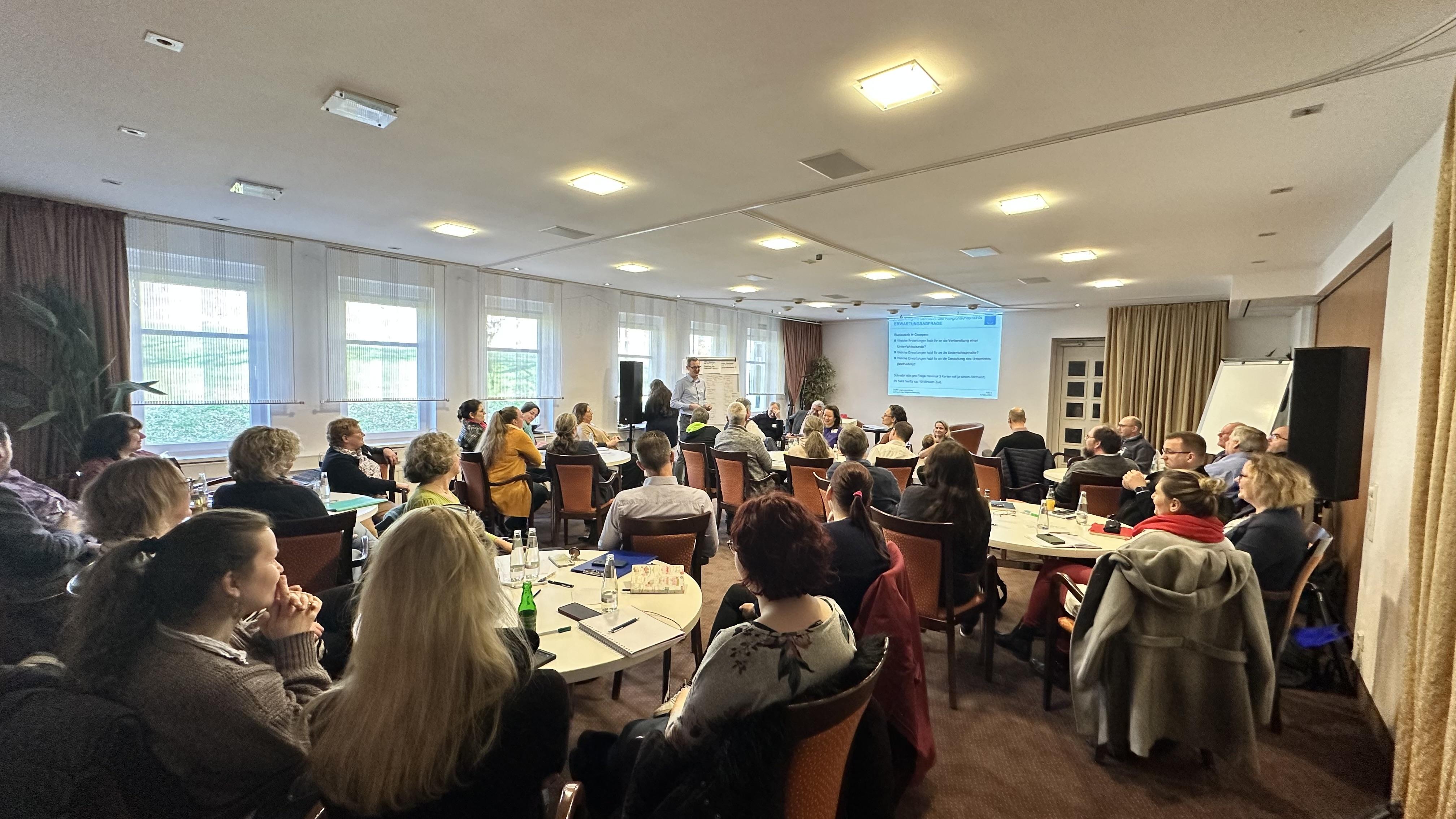 Am Samstag fanden Workshops zu unterschiedlichen Themen statt. Den Lehrkräften für den Religionsunterricht wurde in zwei Teilen das neue Unterrichtsmaterial vorgestellt und erläutert. Über QR-Codes erreichbare Kurzfilme sollen künftig den Lernprozess der Kinder unterstützen. „Das wird den Kindern Freude bereiten“, waren sich die Lehrkräfte einig.