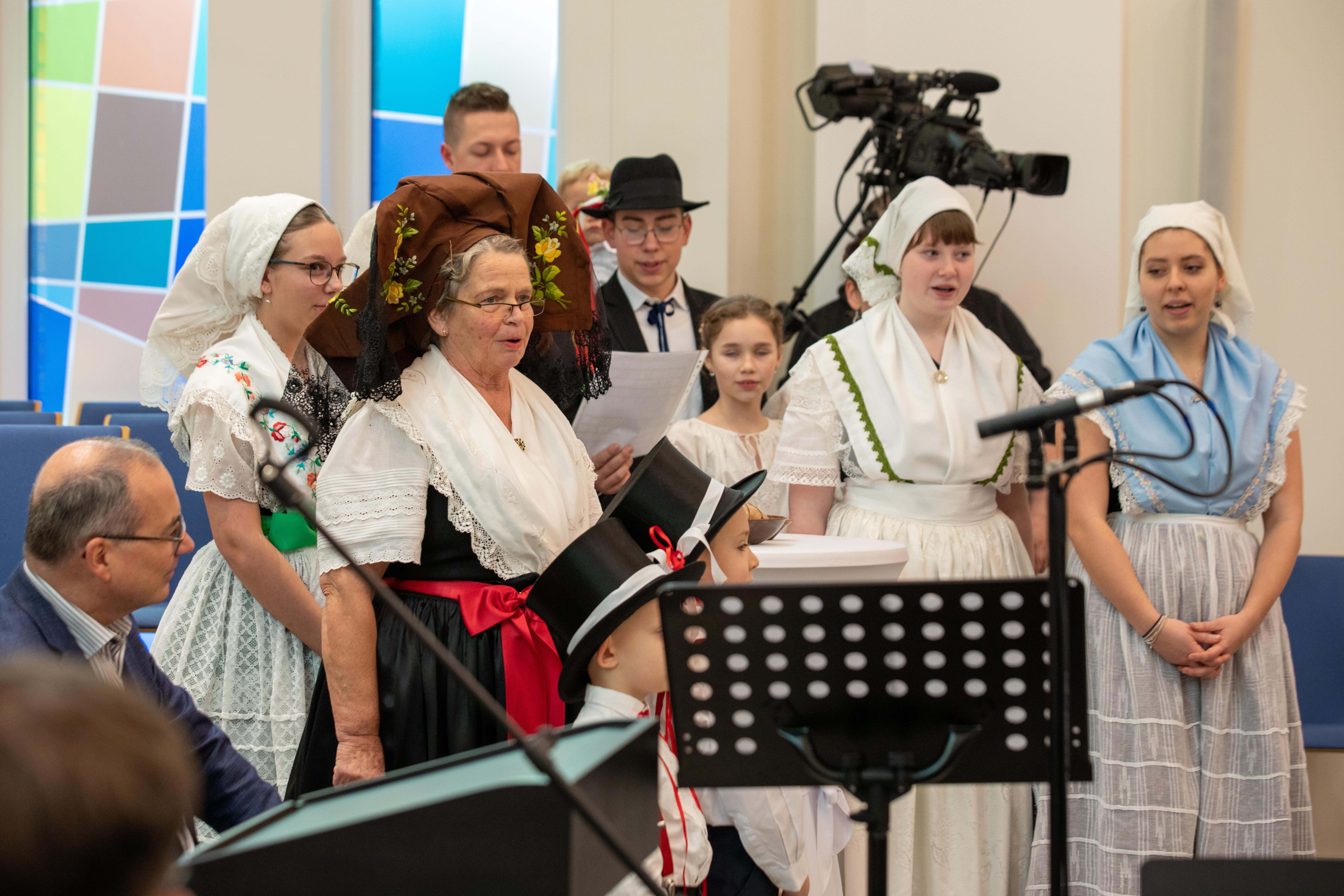 Schon am Samstag hatte die Gemeinde den internationalen Kirchenleiter zu einer Feierstunde eingeladen. In traditionelle Gewänder gekleidet brachten sie ihm die Region Spreewald näher. Neben der Landschaft ist die Prägung durch die sorbischen Einwohner besonders für Deutschland, was Besuchern an den Trachten und Straßenschildern auf Sorbisch schnell auffällt. Einige Ausschnitte dieses Treffens wurden am Sonntagmorgen zu Beginn der Übertragung eingespielt.