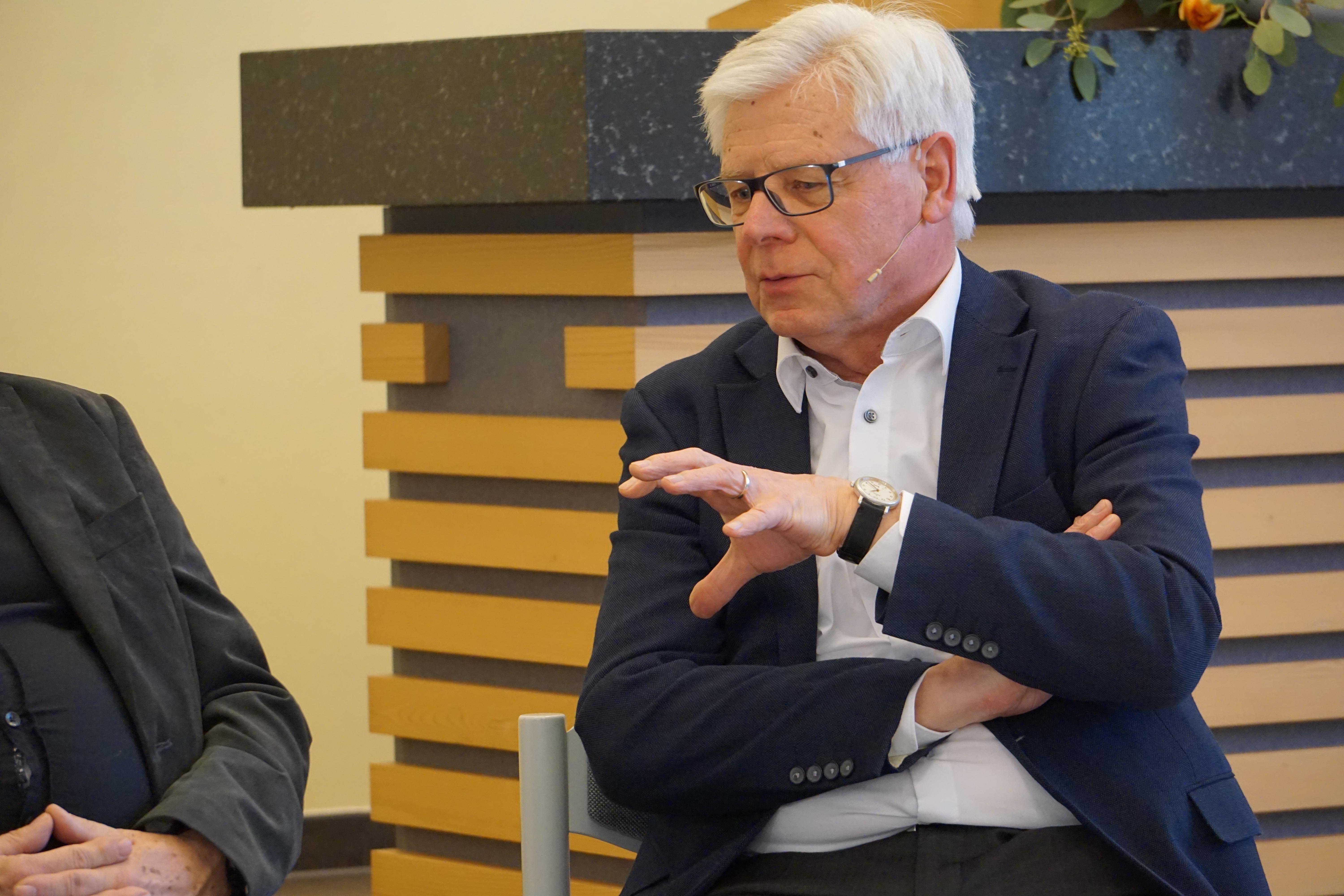 Die Abteilung Kommunikation hatte Apostel Jens Korbien als Vertreter der Kirchenleitung eingeladen, um gemeinsam mit Kirchenmitgliedern über das Jahresmotto zu sprechen. Diese wurden vertreten durch Silvia Haake, die aus ihrem Alltag im Pflegedienst berichtete, und Rainer Schaffrin, der ehrenamtlich als Suchtberater tätig ist. Jörg Leske vom kirchennahen Verein NAK-karitativ e.V. vervollständigte die Runde.