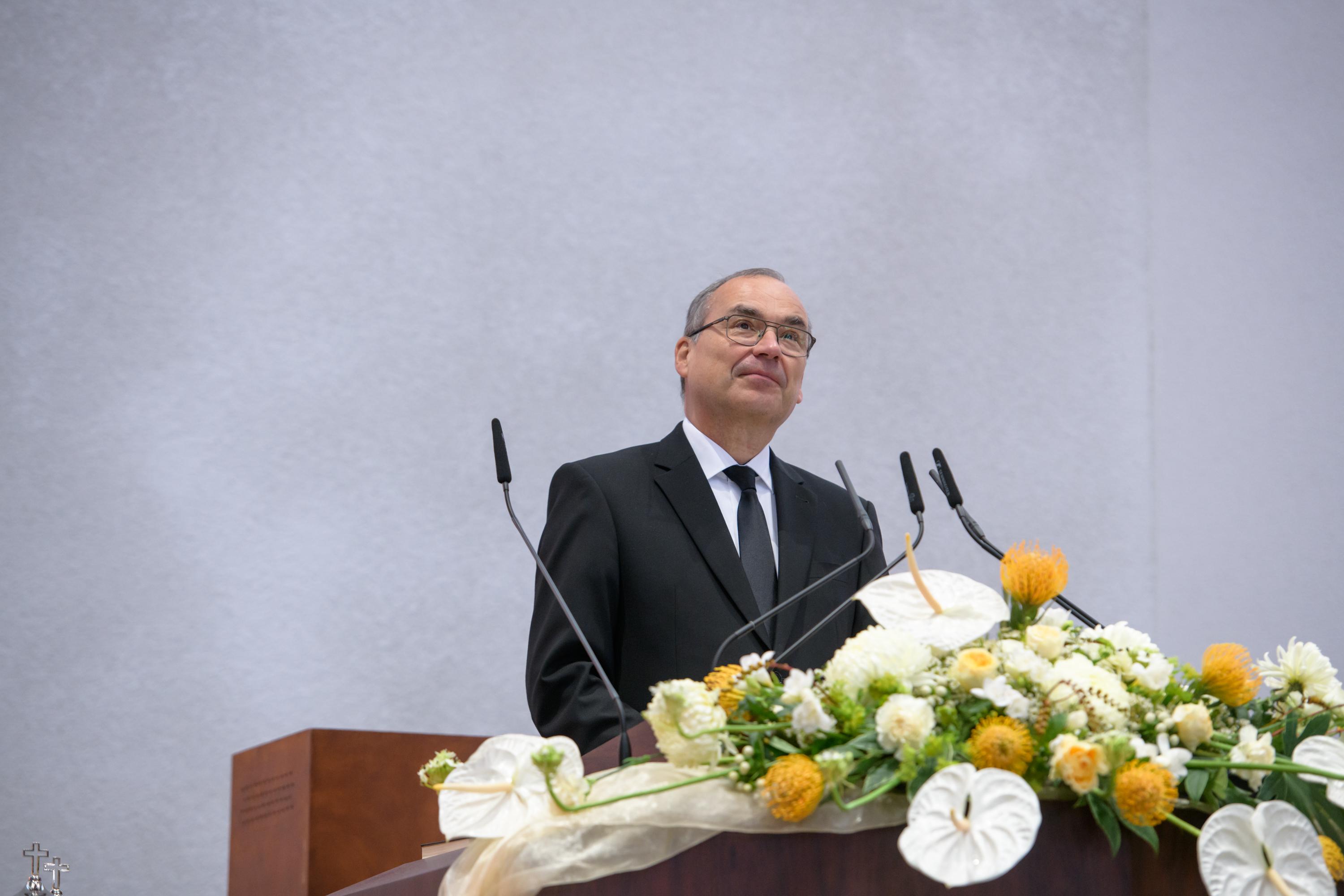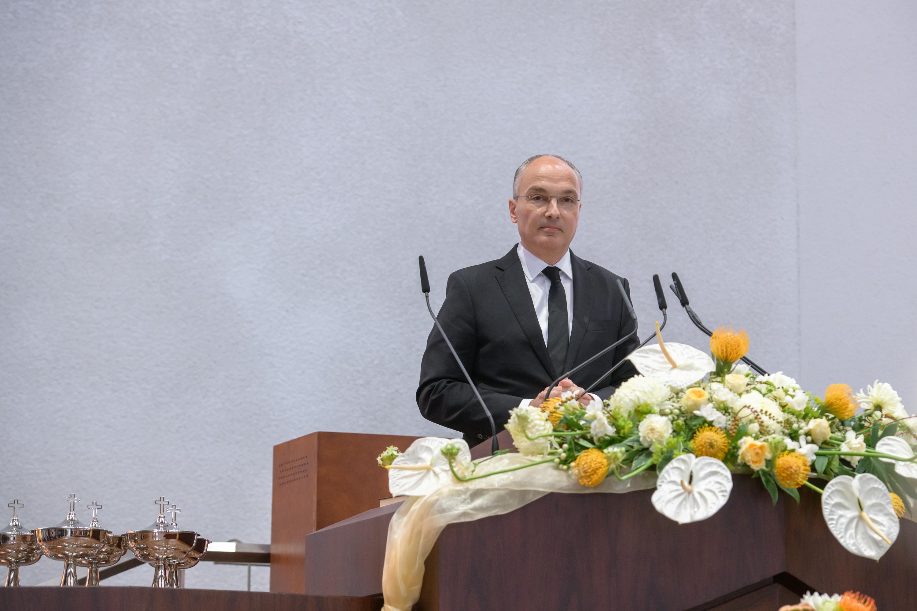 Zu Beginn des Gottesdienstes nutzte Stammapostel Schneider die Gelegenheit, den Geistlichen seinen persönlichen Dank für ihren Dienst auszudrücken. Er betonte, dass dem Dank auch Taten folgen sollen. Daher sei eine Aktualisierung des Leitbildes „Dienen und Führen“ für Geistliche in Arbeit, erklärte er.