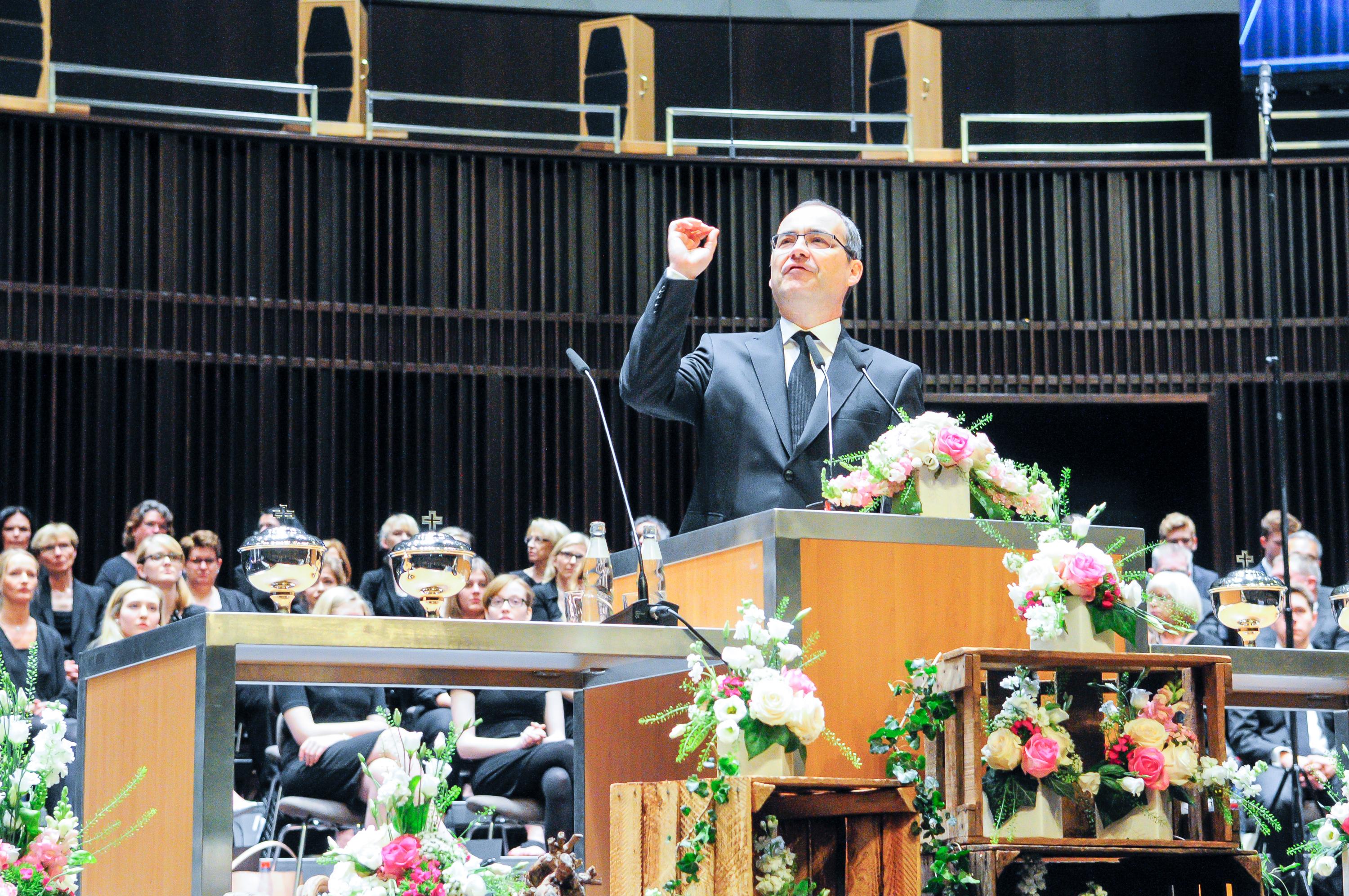 Bezirksapostel Rüdiger Krause gab zu bedenken, dass jeder Mensch im Bild der Speisung der Fünftausend mit seinen Worten und Handeln immer die eigene Umgebung „speise“. Auch hier sei Jesus das Vorbild, der jederzeit das richtige Wort fand und das Richtige tat. „An ihn werden wir nie heranreichen, aber er muss unser Vorbild bleiben.“