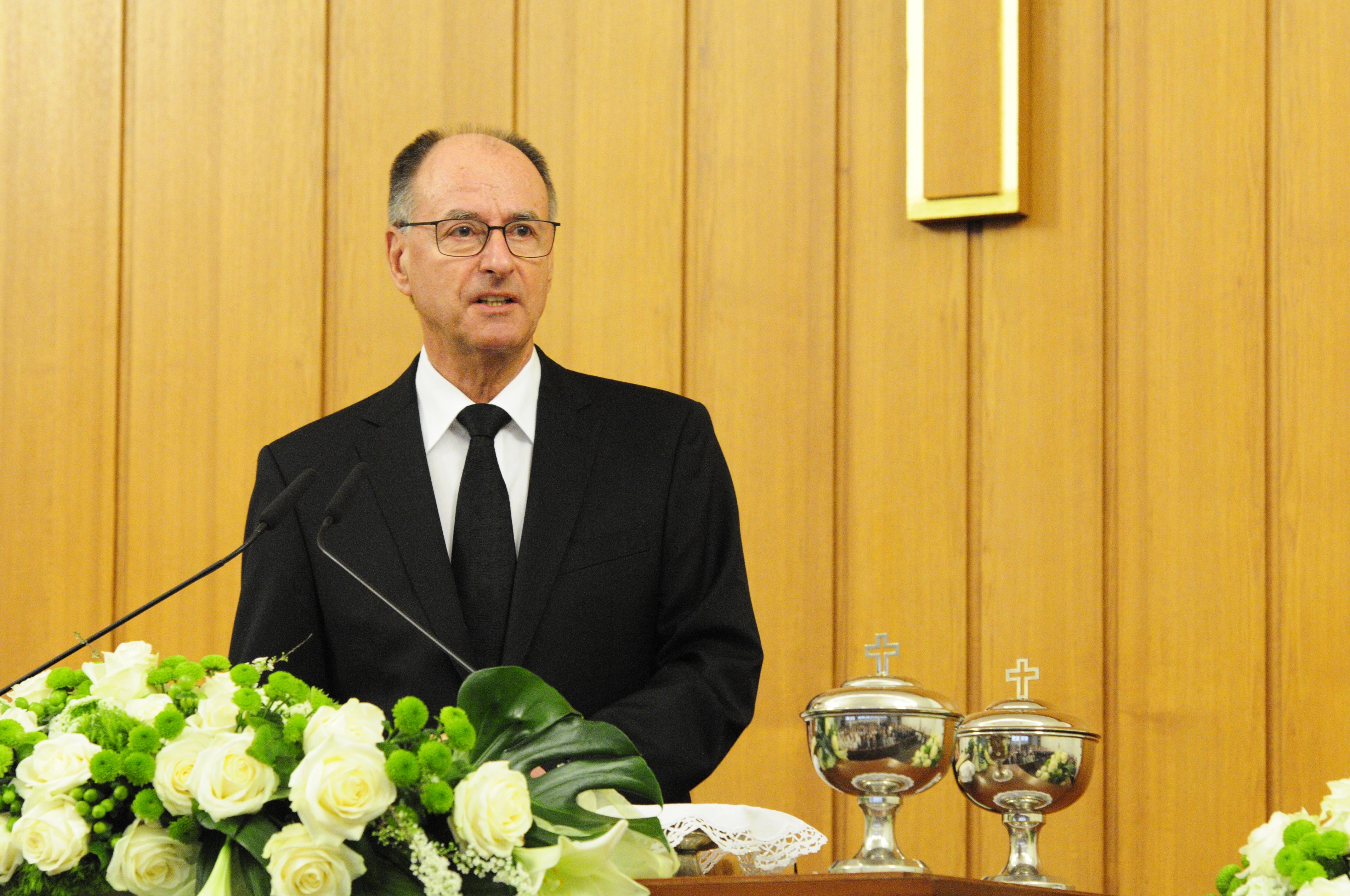 „Lasst uns den Gottesdienst für Entschlafene als ein Lob- und Dank-Gottesdienst gestalten“, rief Stammapostel Schneider die Gemeinde auf und bezog sich dabei auf das Jahresmotto „Ehre sei Gott, unserm Vater.“ Die Dankbarkeit für das Heil in Jesus Christus stand im Mittelpunkt der Predigt.