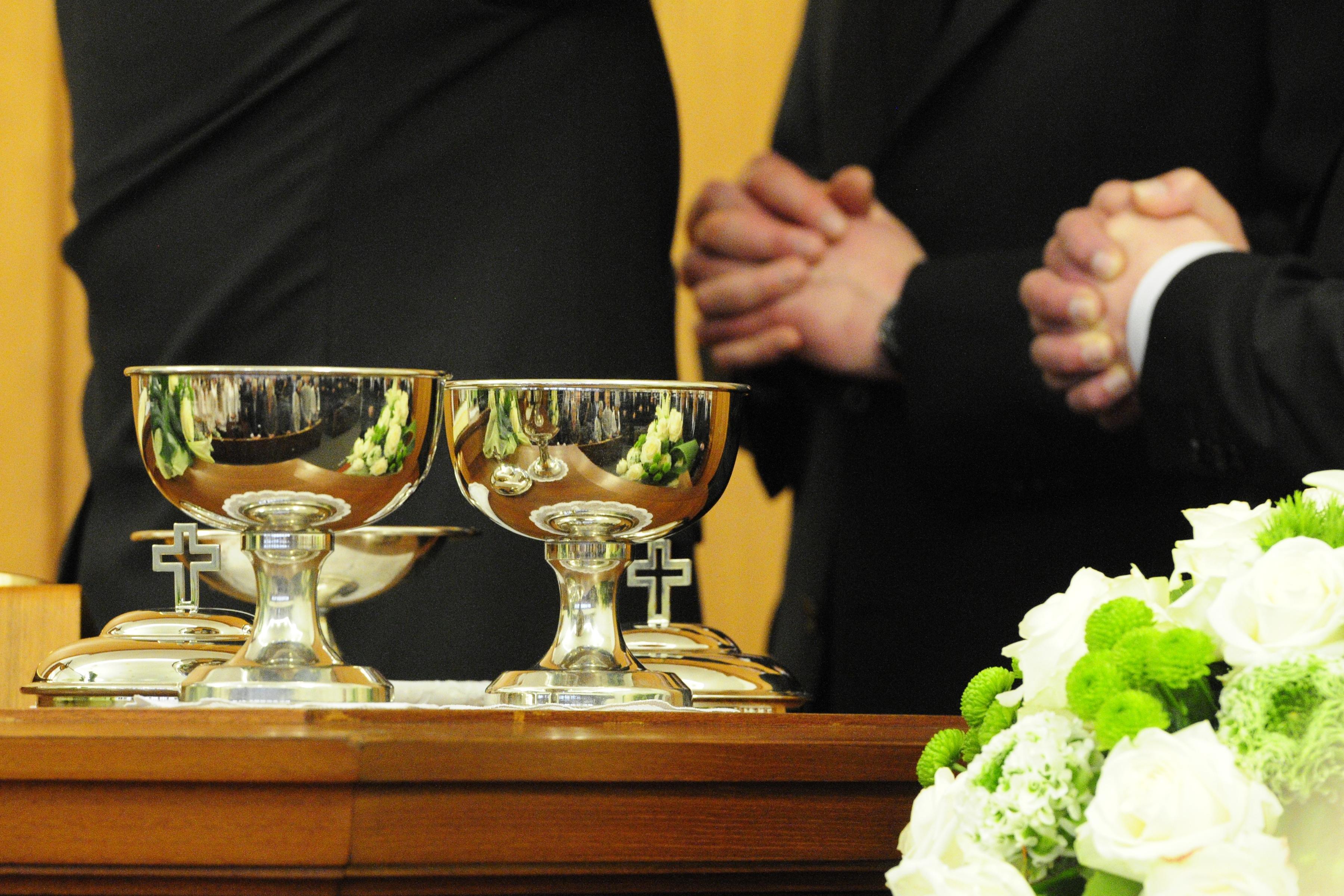 Nach der Feier des Heiligen Abendmahls folgte die Spendung der Sakramente für die Seelen der jenseitigen Welt. In Vertretung für die Entschlafenen empfingen der Bezirksvorsteher Jürgen Wiese und Hirte Jürgen Jegminat, Gemeindevorsteher von Neumünster, die Heilige Wassertaufe, die Heilige Versiegelung und das Heilige Abendmahl.