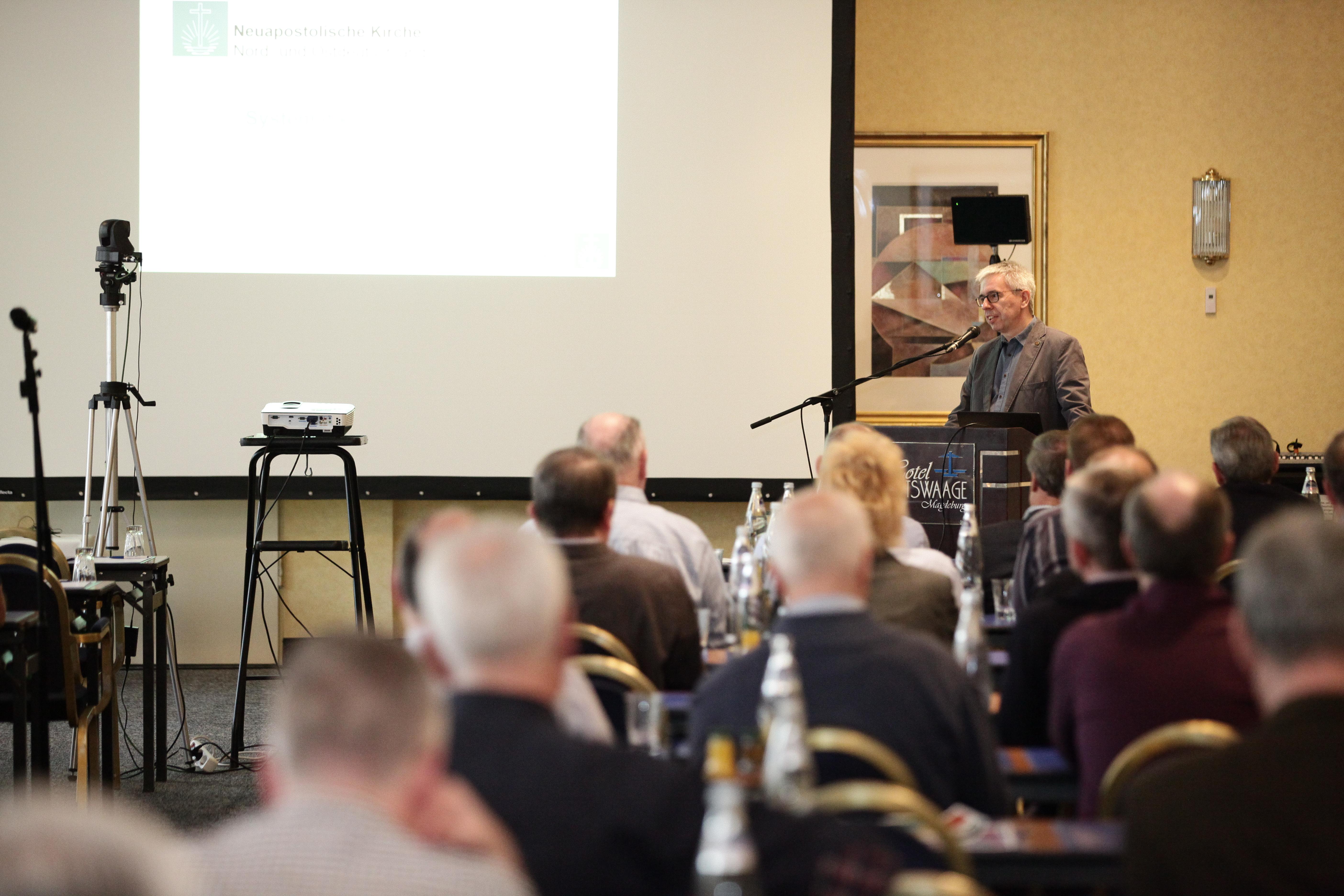 Apostel Dirk Schulz berichtete über den Bereich Aus- und Fortbildung für Amtsträger. Hirte Jürgen Jegminat, Mitarbeiter der Kirchenverwaltung in Hamburg, ist zukünftig mit der Koordination beauftragt. Gemeinsam mit Apostel Helge Mutschler und einer Arbeitsgruppe von acht bis zehn Personen werden neue Konzepte erarbeitet und eingeführt.