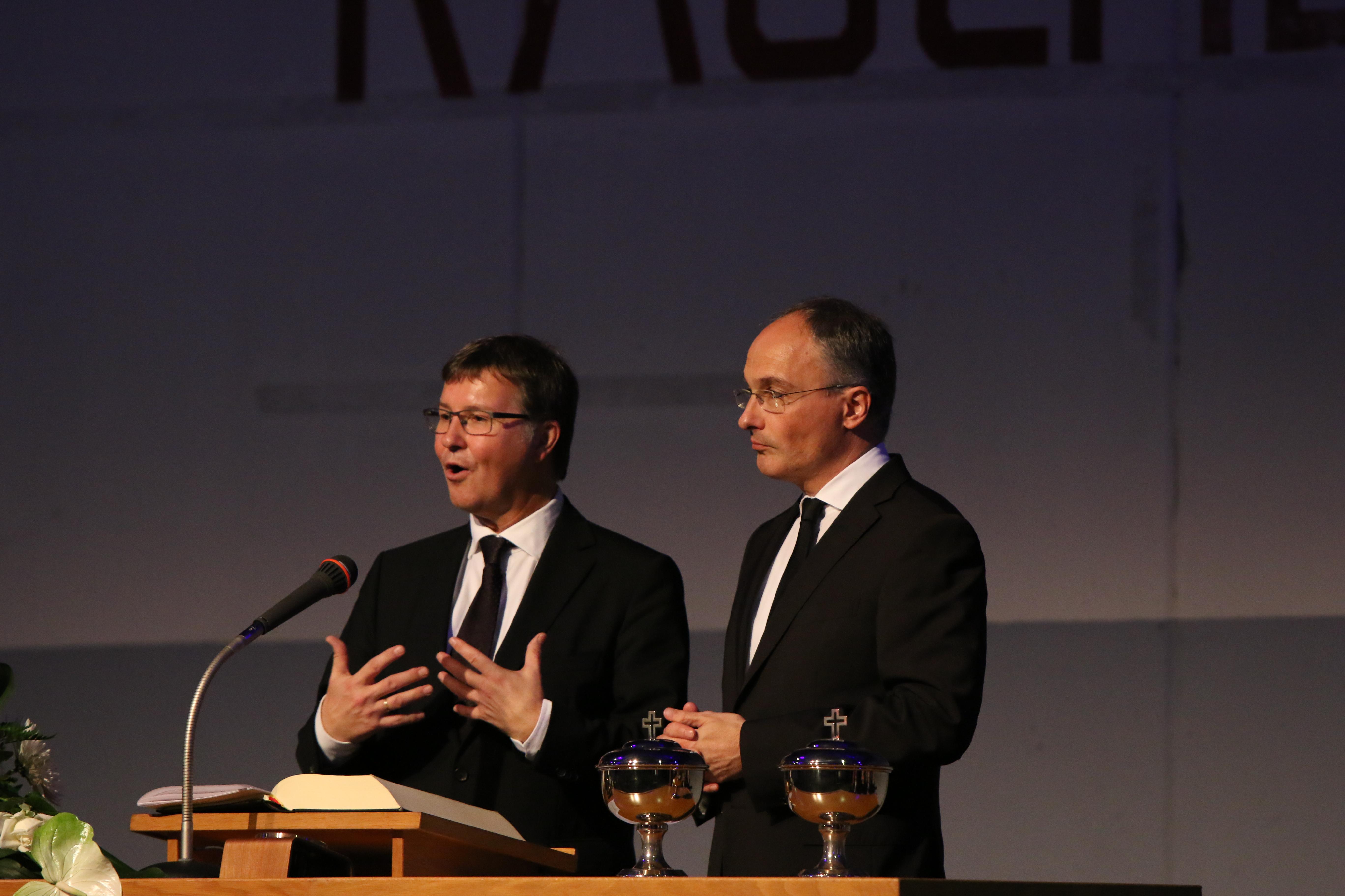 Apostel Schulz legte der Predigt Hebräer 4,16 zu Grunde: „Darum lasst uns hinzutreten mit Zuversicht zu dem Thron der Gnade, damit wir Barmherzigkeit empfangen und Gnade finden zu der Zeit, wenn wir Hilfe nötig haben.“